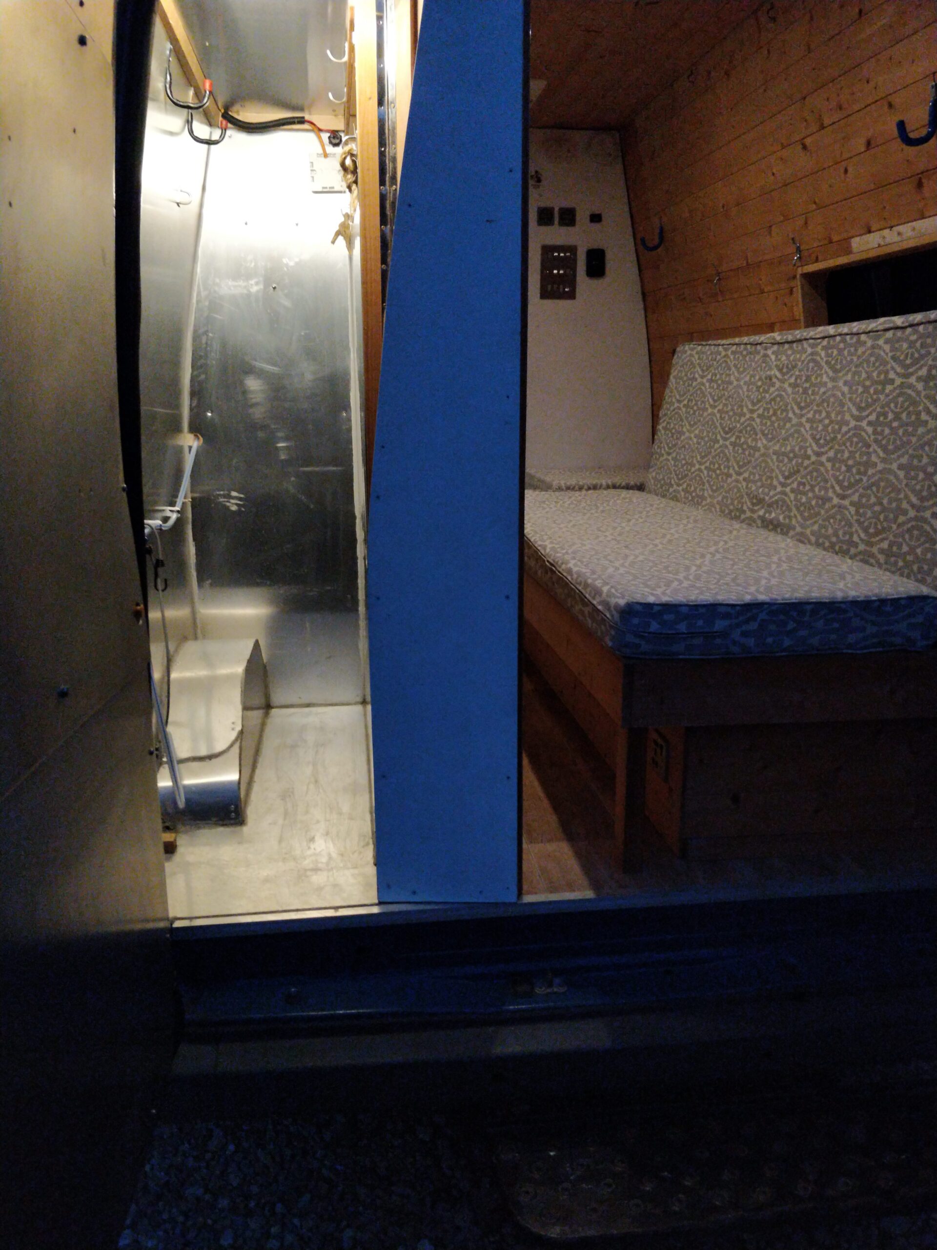 70l water tank, water pump and expansion bellows, sink and faucet, underslung grey water tank.
