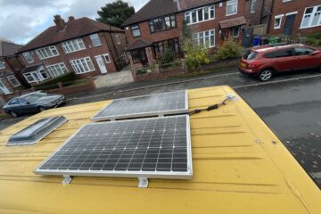 – Small inverter with one three pin UK plug and USB (This is capable of charging laptops)