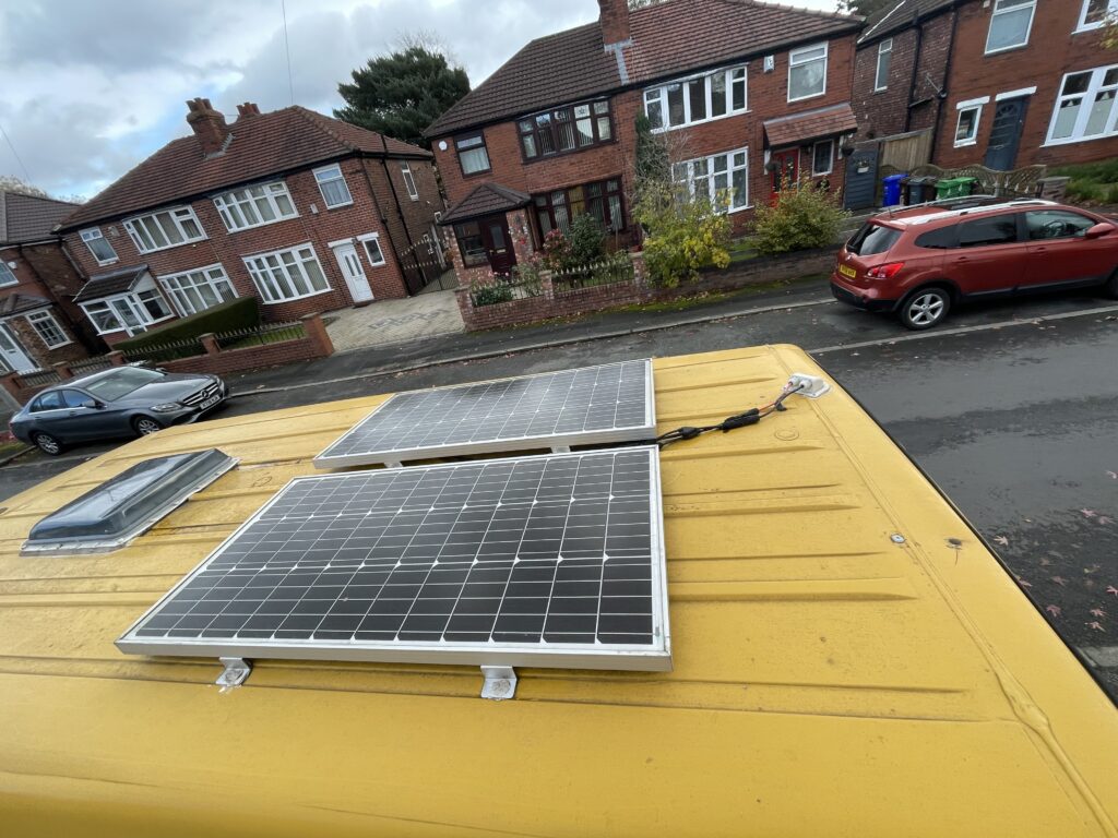 – Small inverter with one three pin UK plug and USB (This is capable of charging laptops)