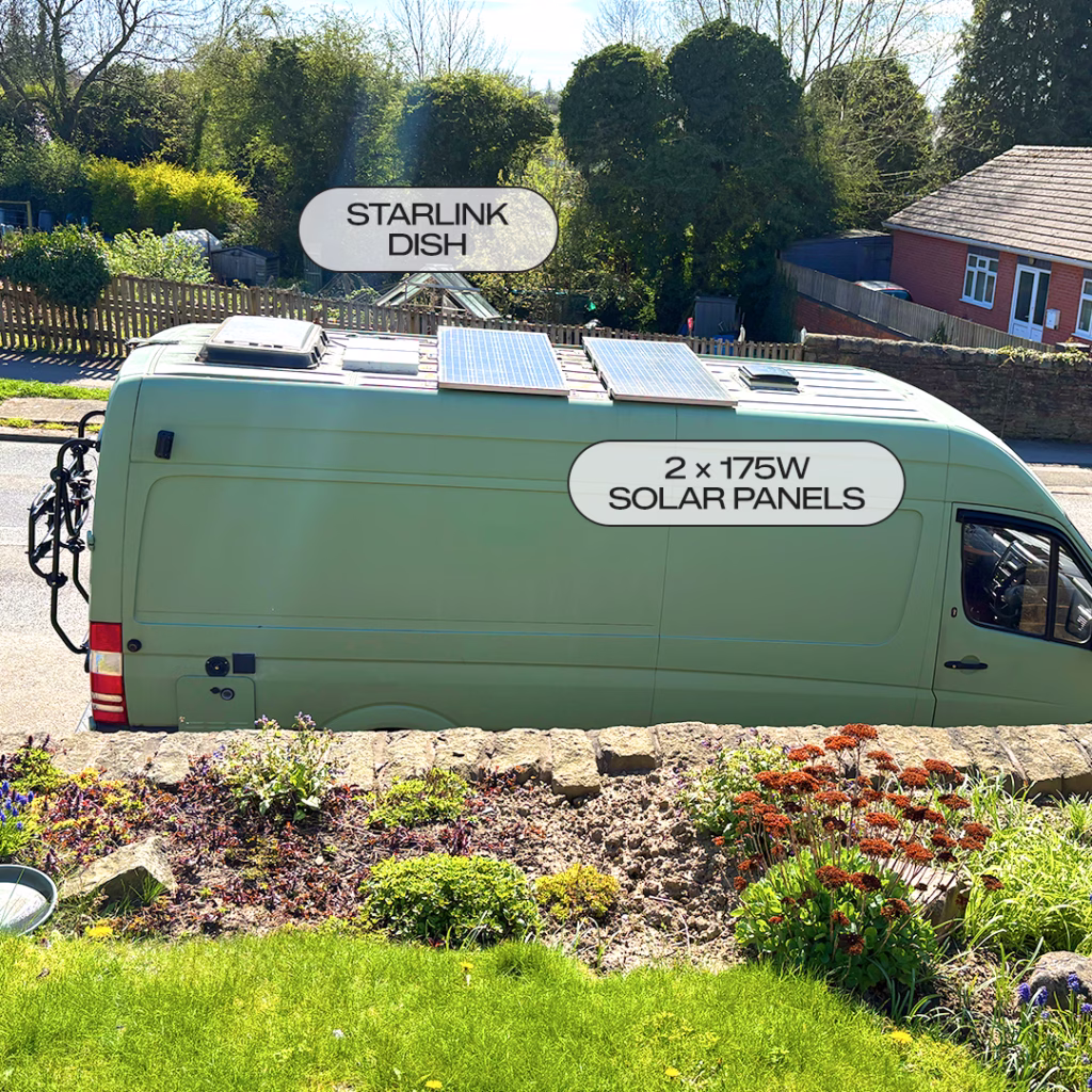 Roof-mounted Starlink dish (flat-mounted, no setup needed)