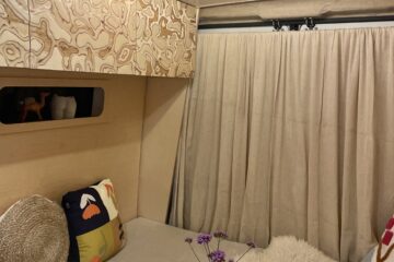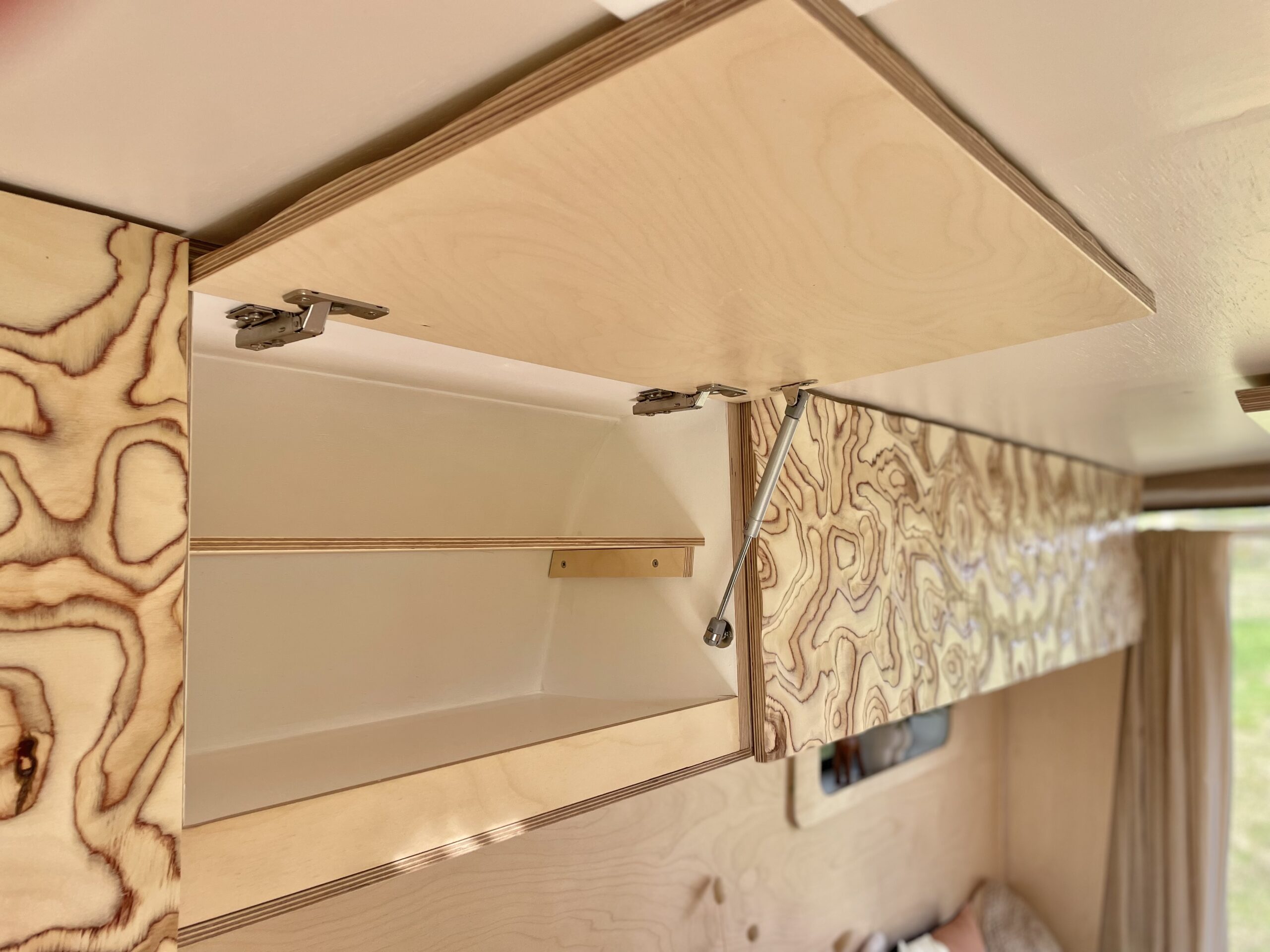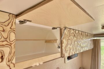 Overhead cabinetry spans the length of the van making up 5 smaller storage compartments. A little bit like Mary Poppin’s handbag, they may look small but are deceivingly roomy.