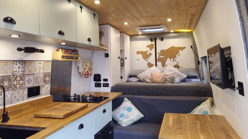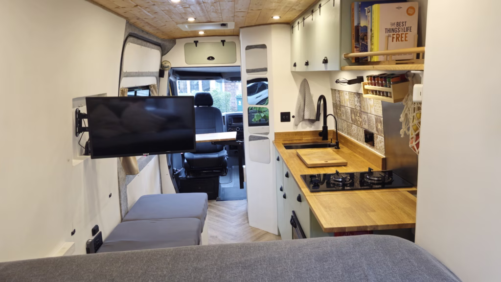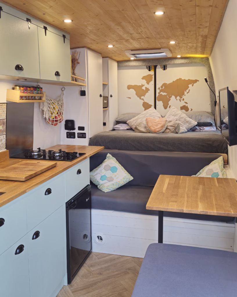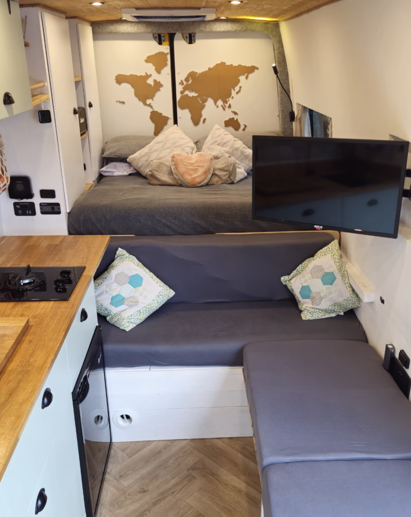 Meet Marge — Lovingly designed and built by us with the dream of adventure in mind. She’s been our full-time off-grid home for the last 18 months, taking us safely across Europe and back. Every inch of her was thoughtfully crafted in our DIY conversion, with no expense spared to create a space that feels both practical and deeply cosy. The clever layout, warm wooden finishes, and soft lighting make the interior feel bright, spacious, and homely — the perfect base for cooking, relaxing, and exploring. Marge has been a wonderful, reliable companion, and now she’s ready for her next adventure.