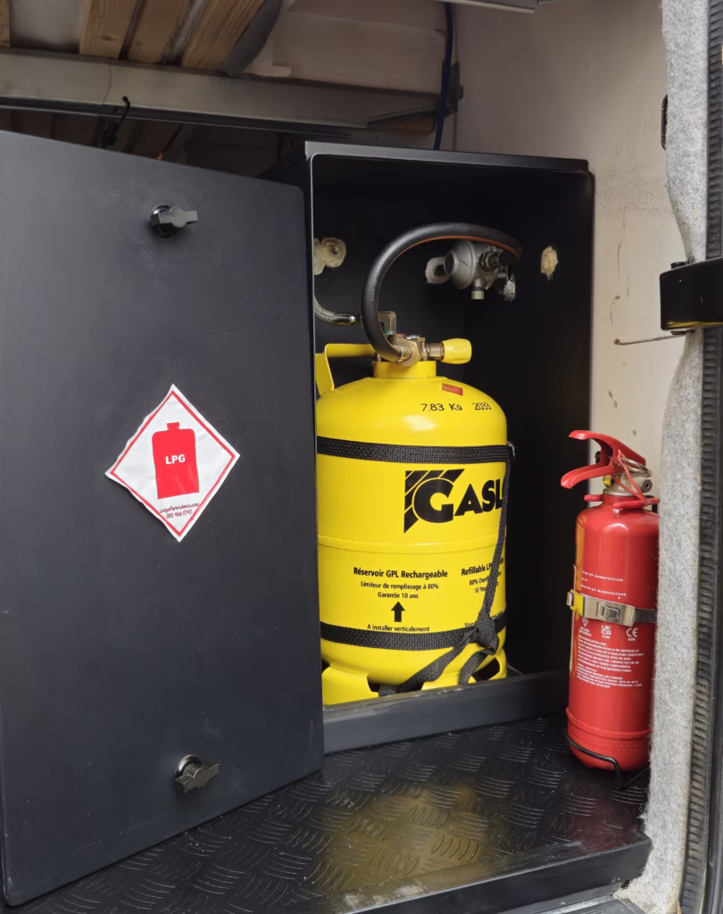 ● Carbon monoxide alarm, fire extinguisher and fire blanket.