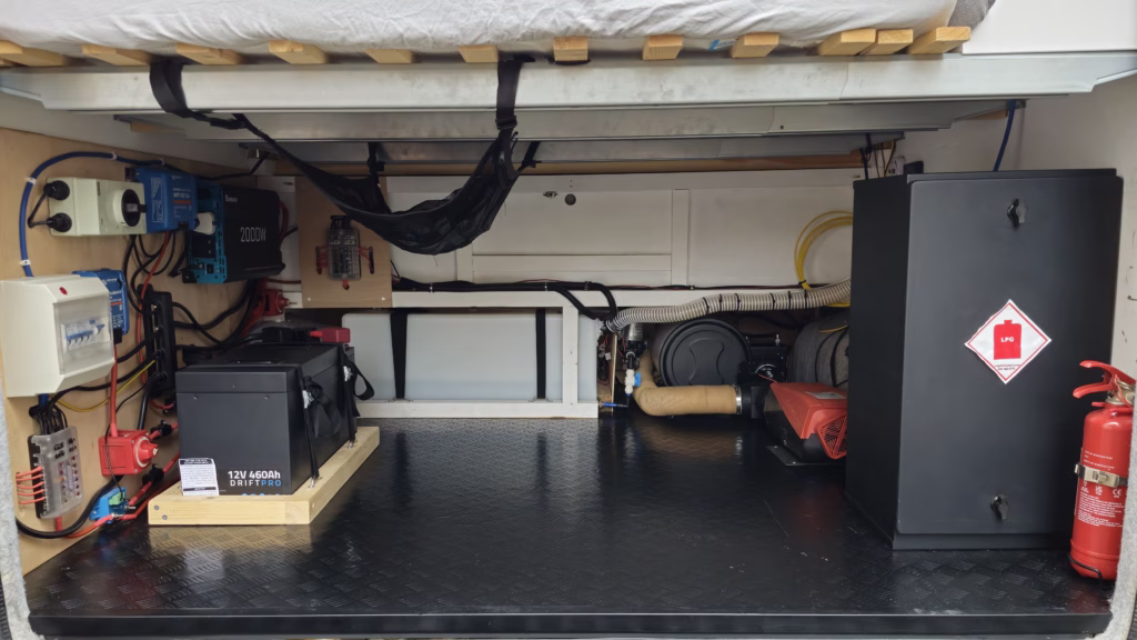 Professionally designed and supplied electrical system by Nohma.com. The system is an absolute beast designed with full off-grid living in mind and does not have an option for shore power and has never needed it. It has allowed us to live off-grid indefinitely for the past 18 months, from snow to sunshine, without ever missing a beat. Key components: