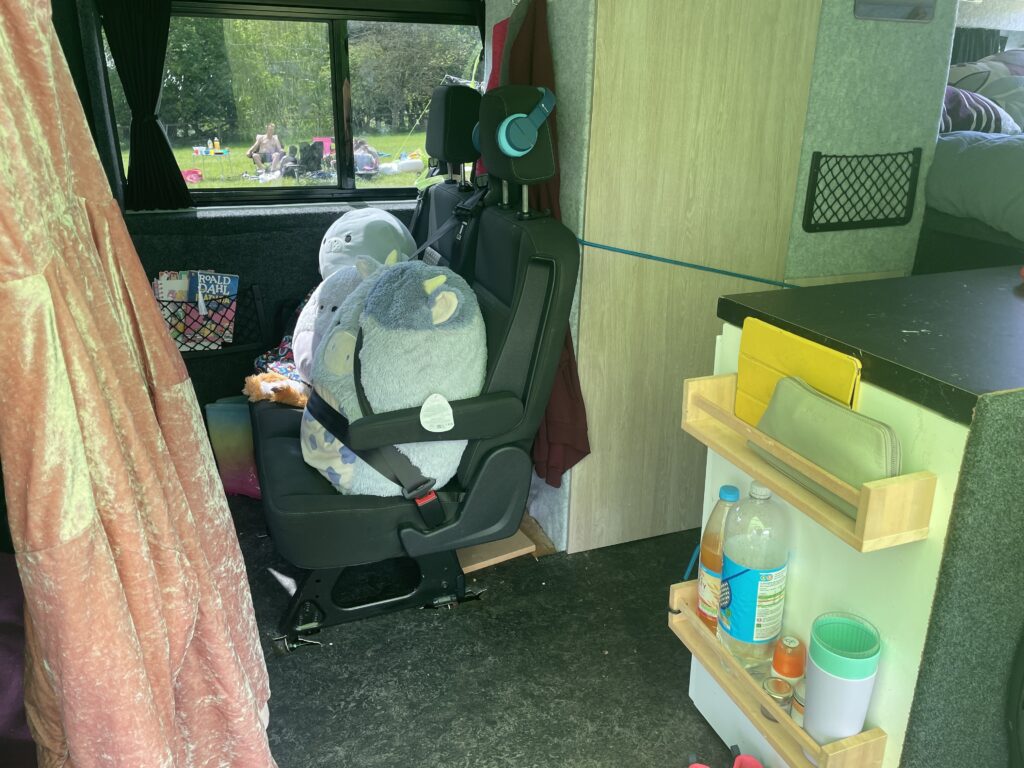 In the sleeping area there is a fixed double bed and a fixed single bed (which sleeps 2 young children – ours are 10yrs and 7yrs and fit lovely.)