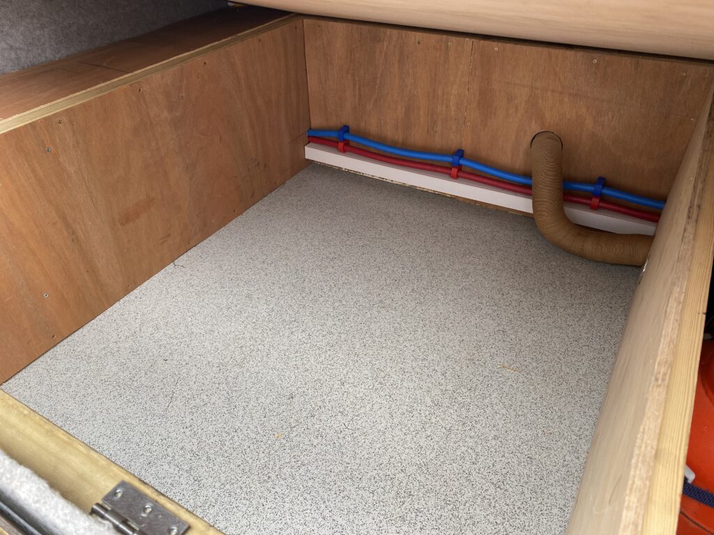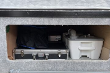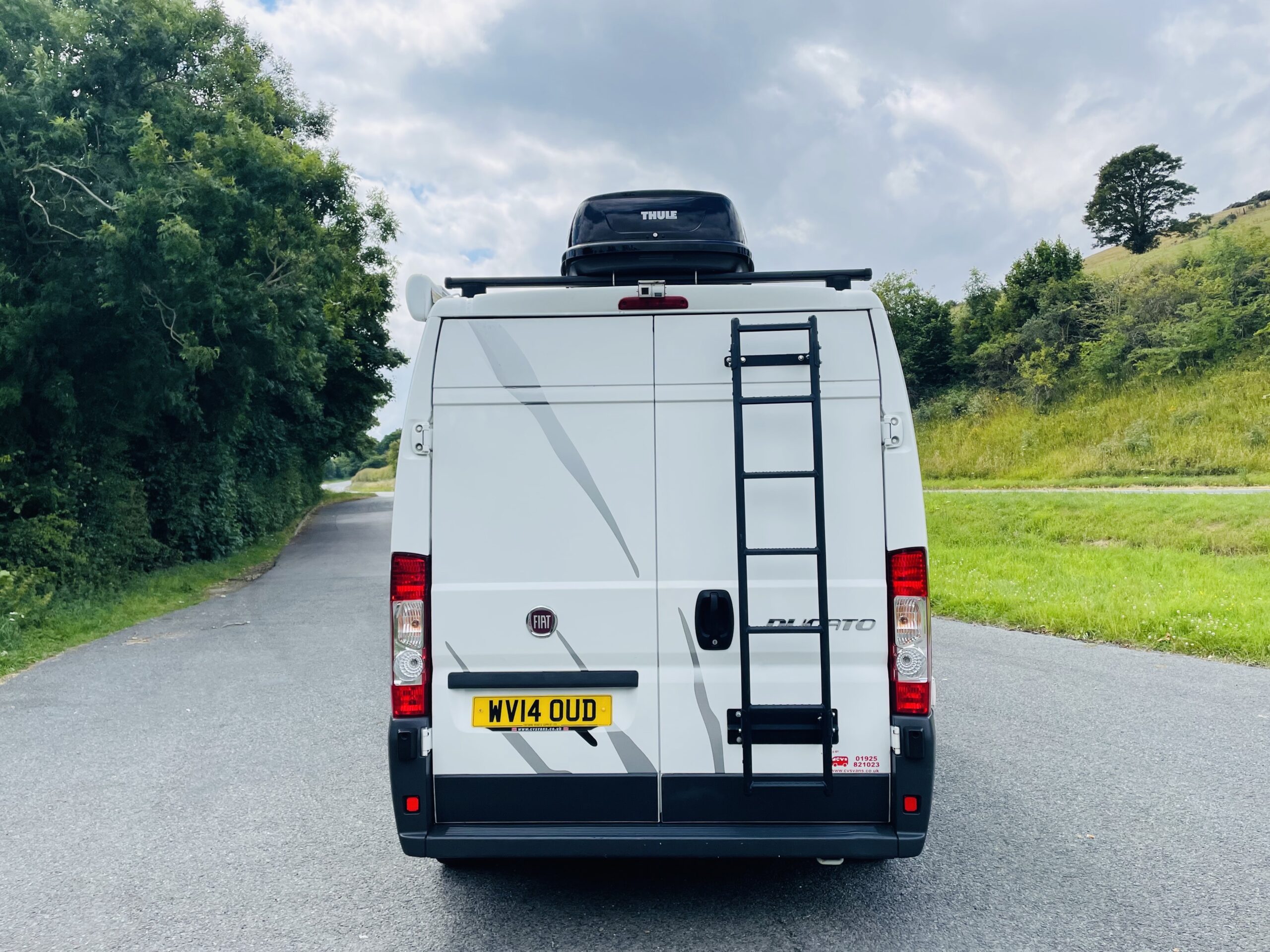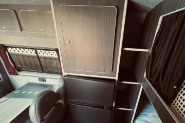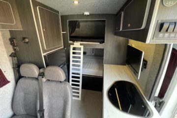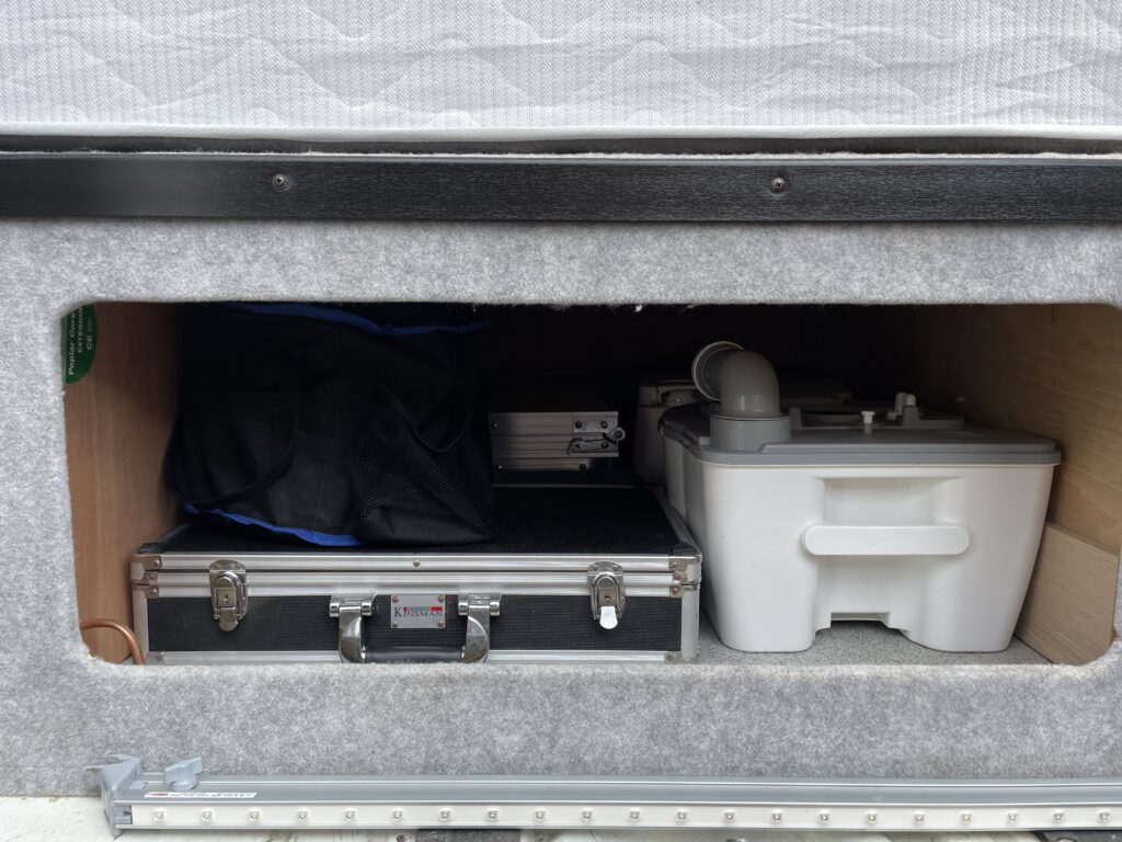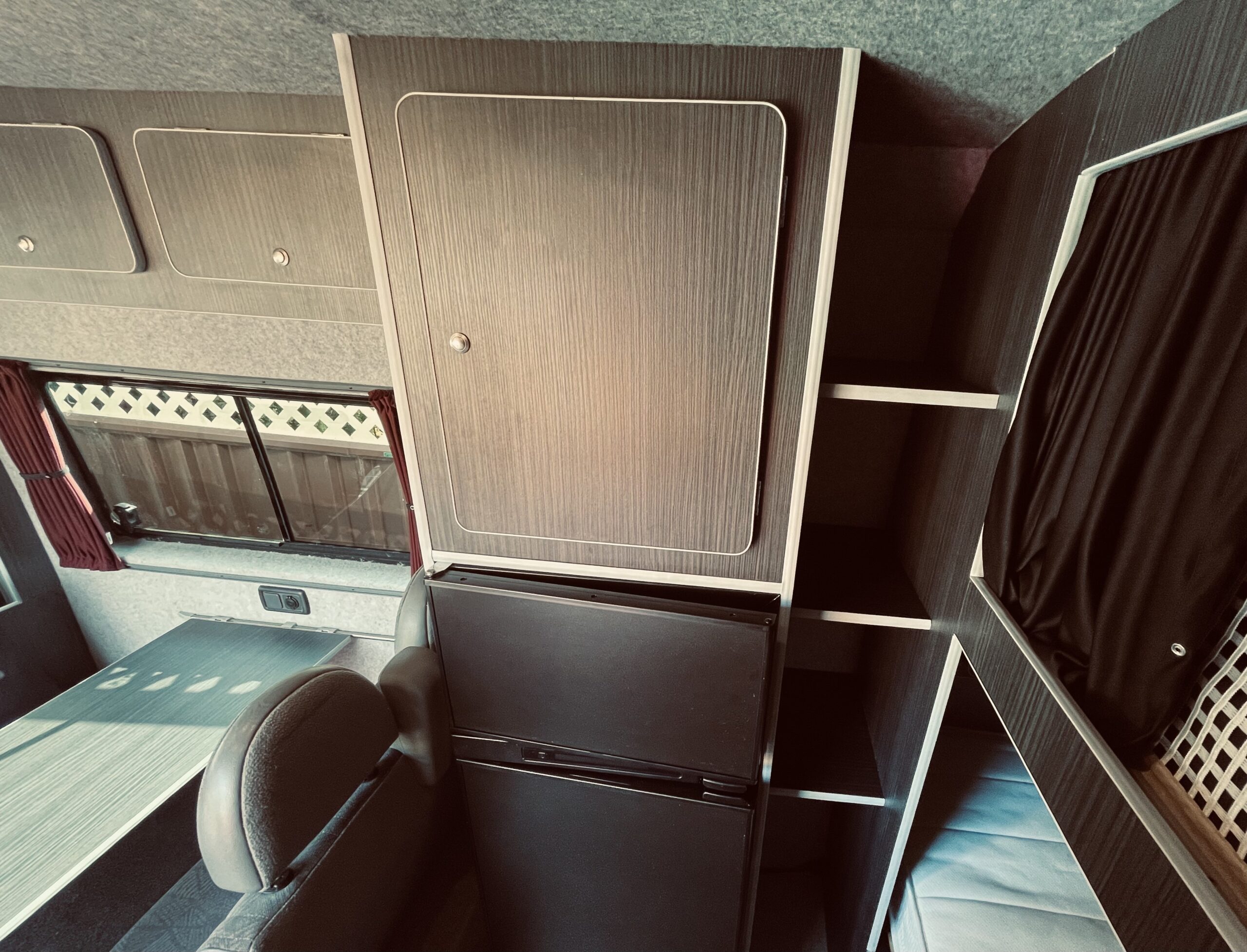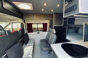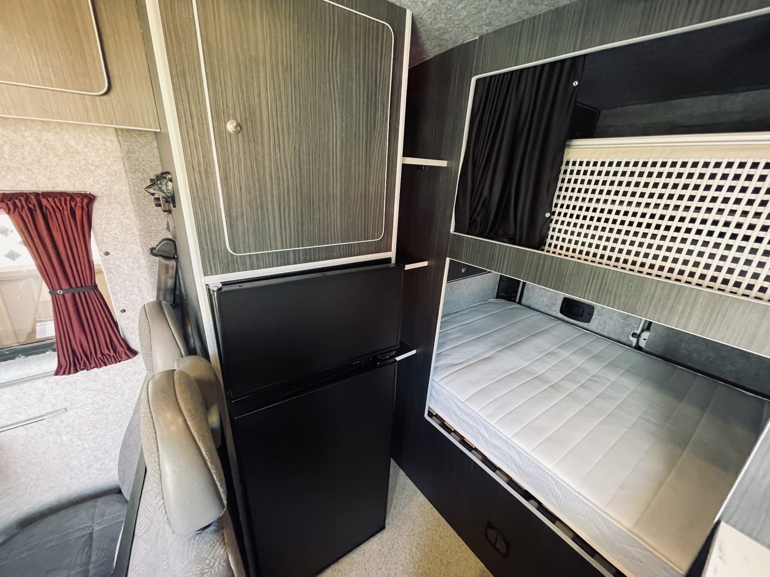 Upper bunk is boxed in, but an access hatch is available when the back doors are open. This means that the upper bunk is pitch black, even in daylight.