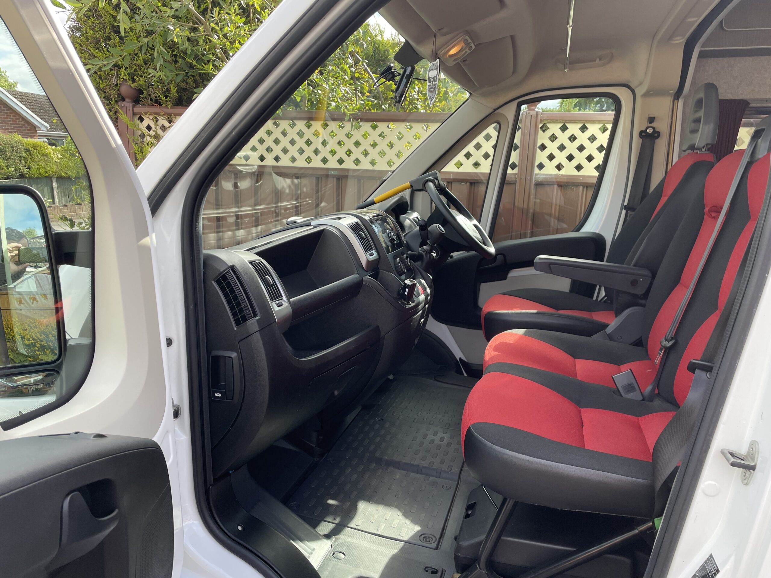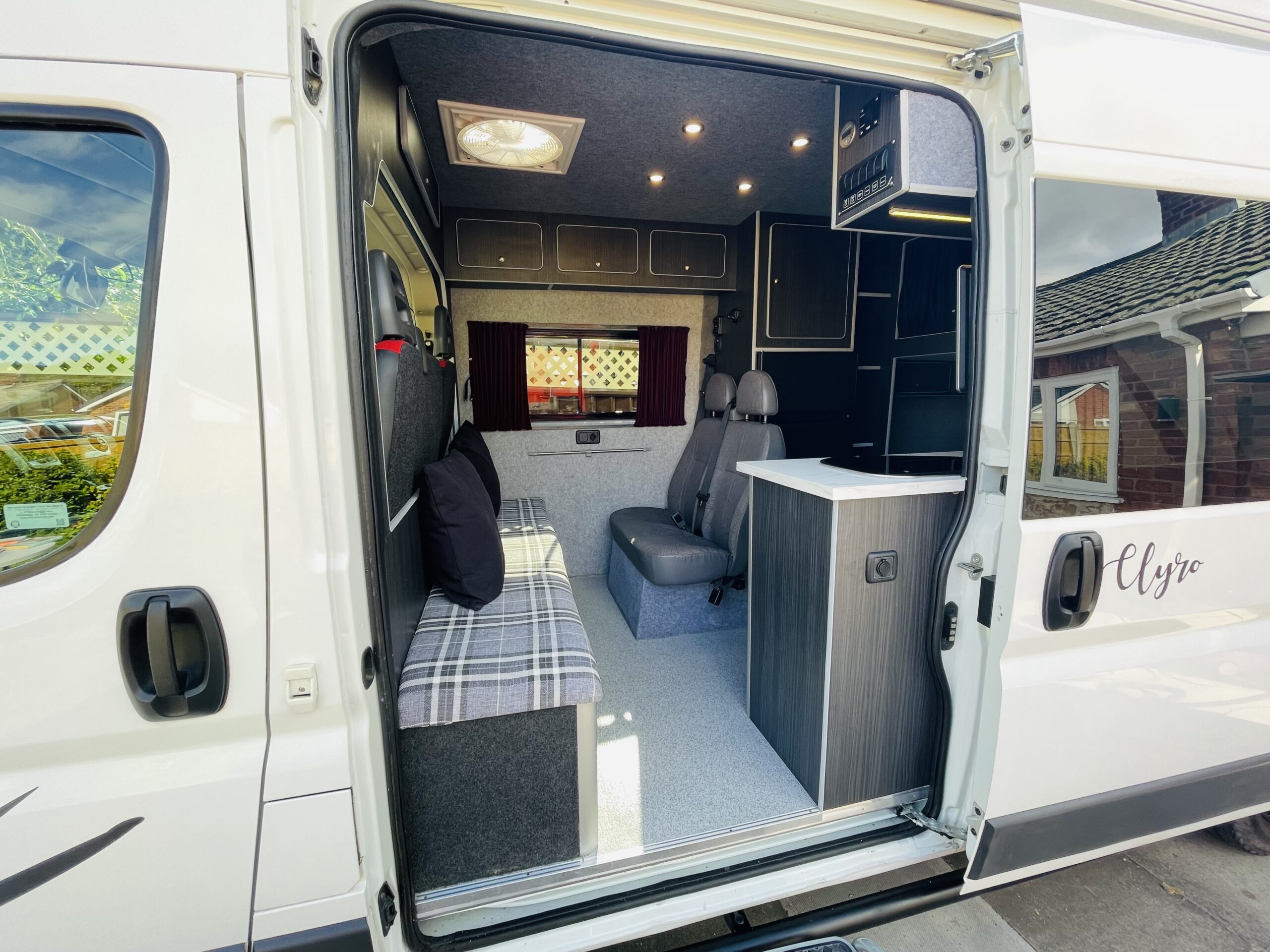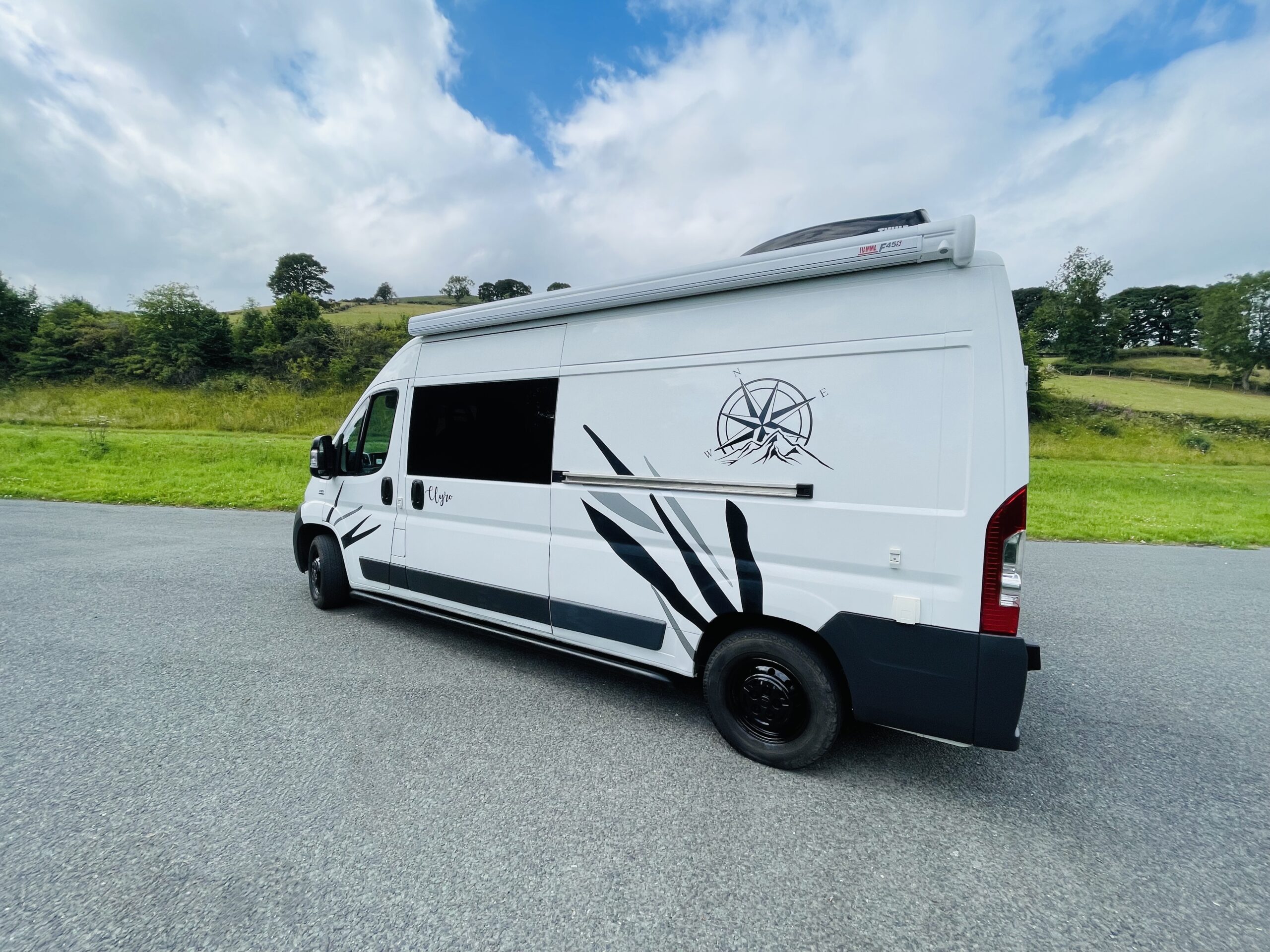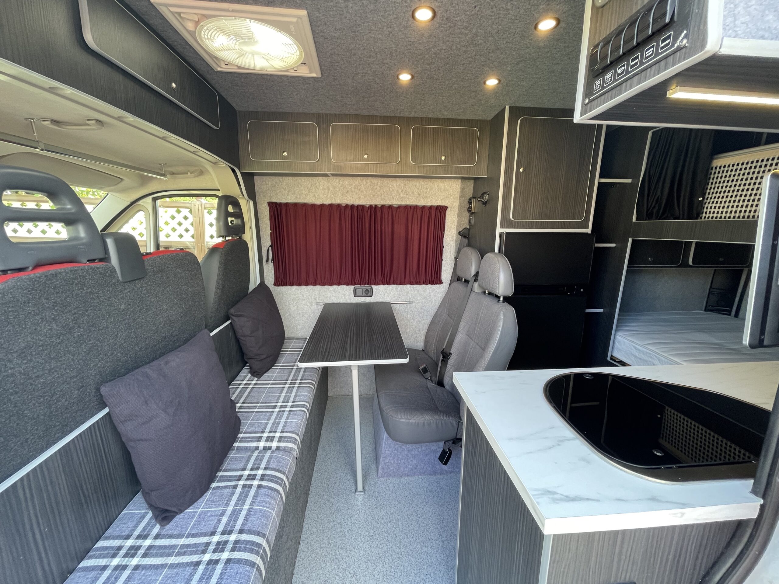 Features not to be missed include an electric motor awning, huge leisure battery recharged by solar, multiple USB ports, 5 seat-belted seats and double size bunks. Ideal for a family of 4 or 5. Hot water, heating, TV and a HUGE fridge freezer. External Shower and Portable Toilet (with tent)..