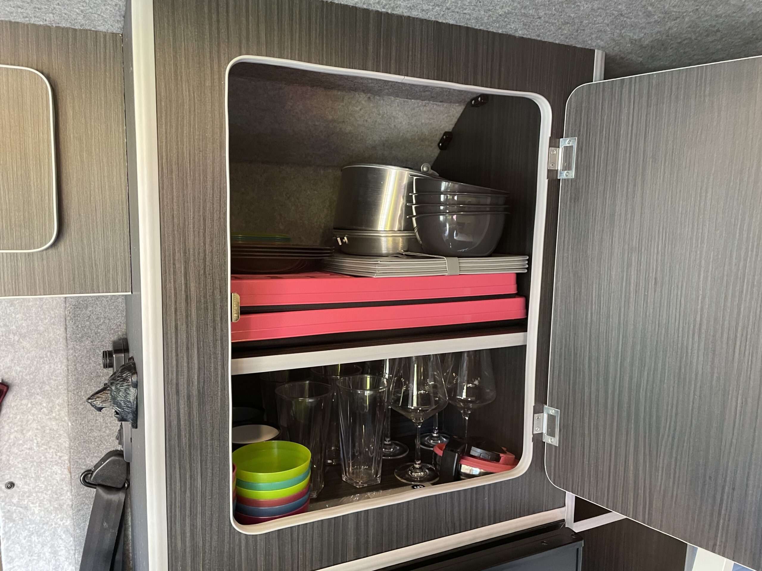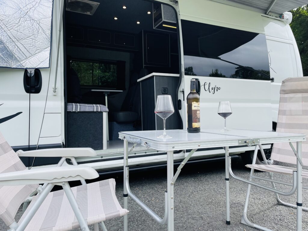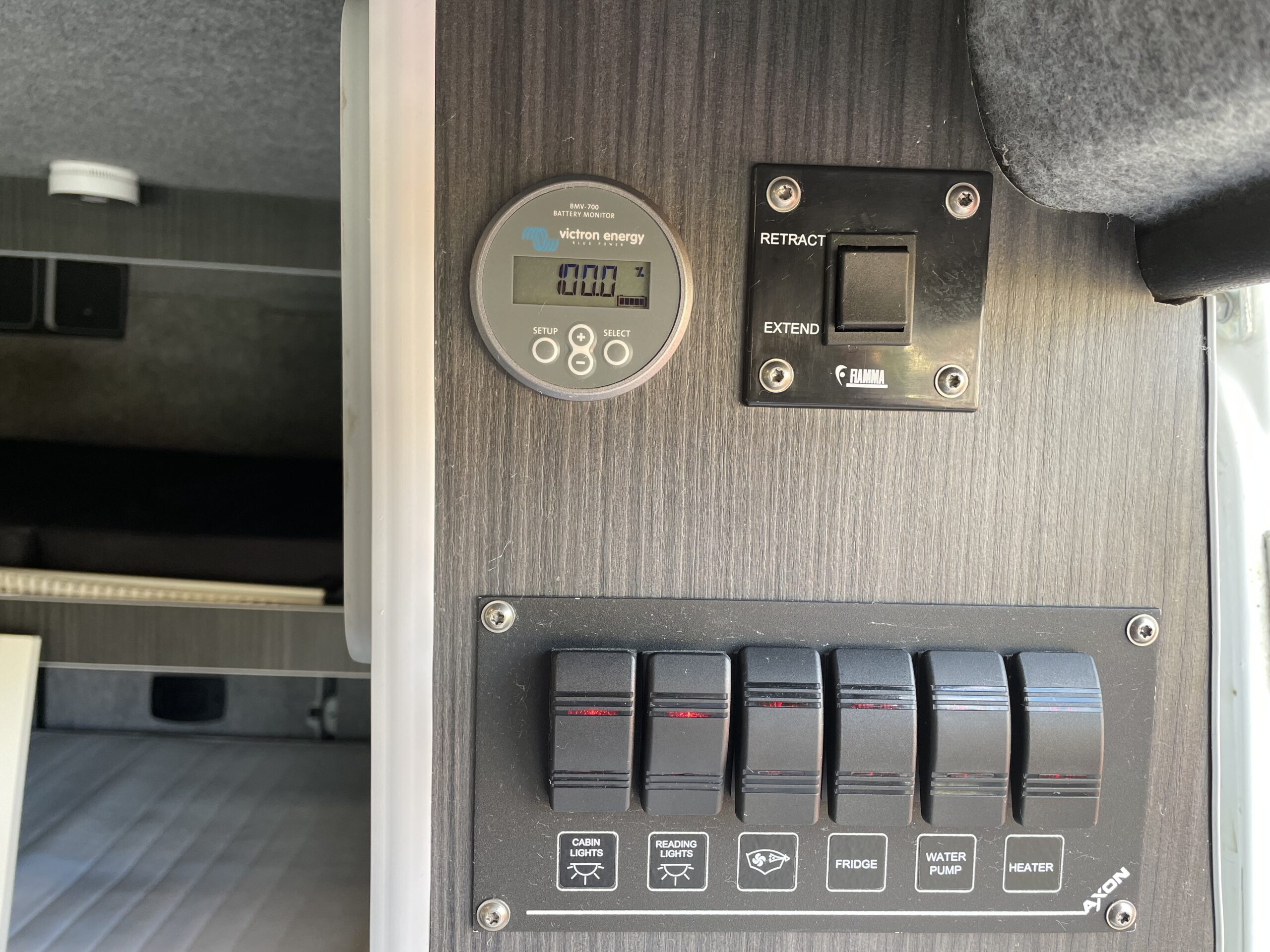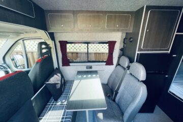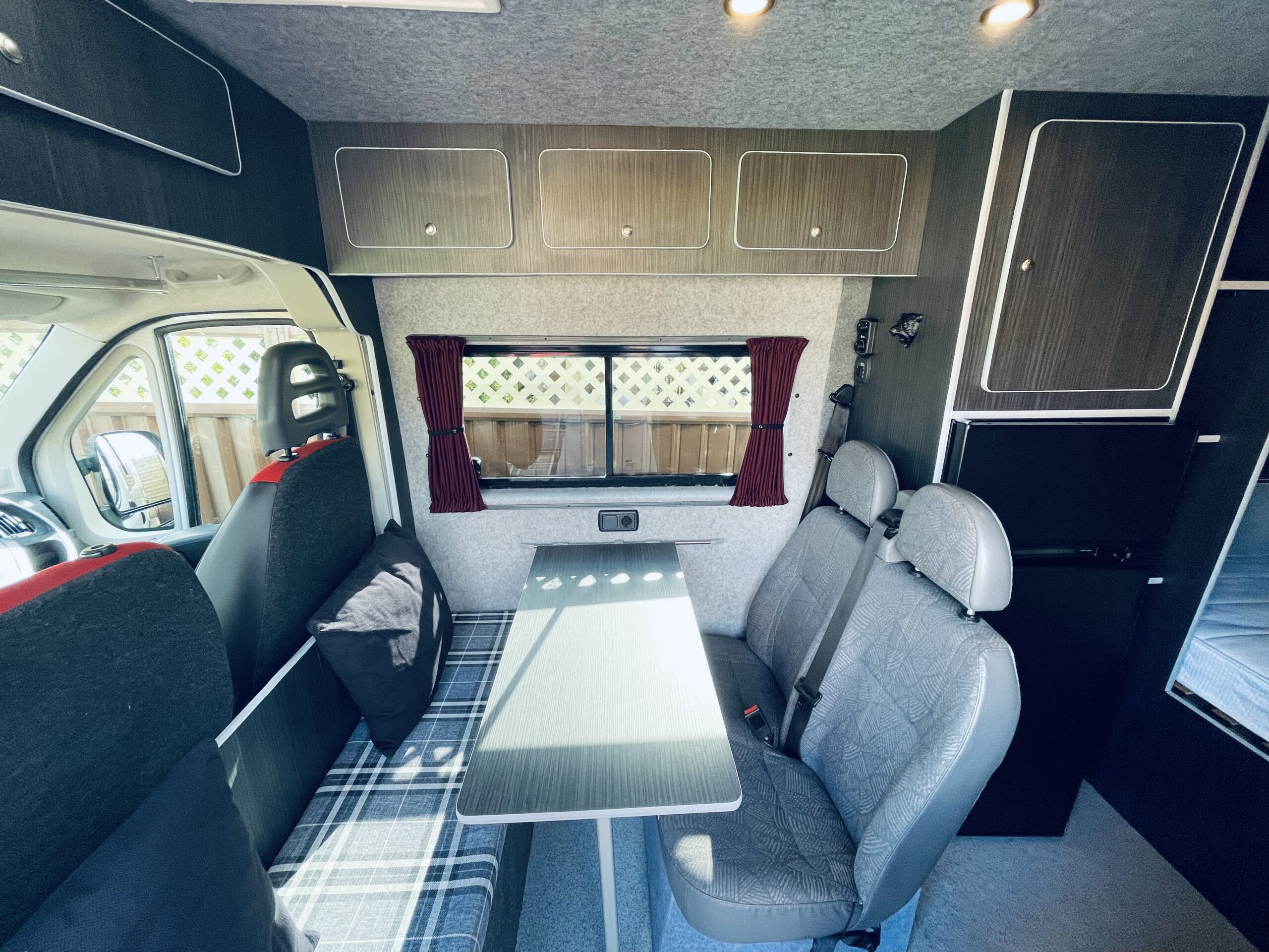 Features not to be missed include an electric motor awning, huge leisure battery recharged by solar, multiple USB ports, 5 seat-belted seats and double size bunks. Ideal for a family of 4 or 5. Hot water, heating, TV and a HUGE fridge freezer. External Shower and Portable Toilet (with tent)..