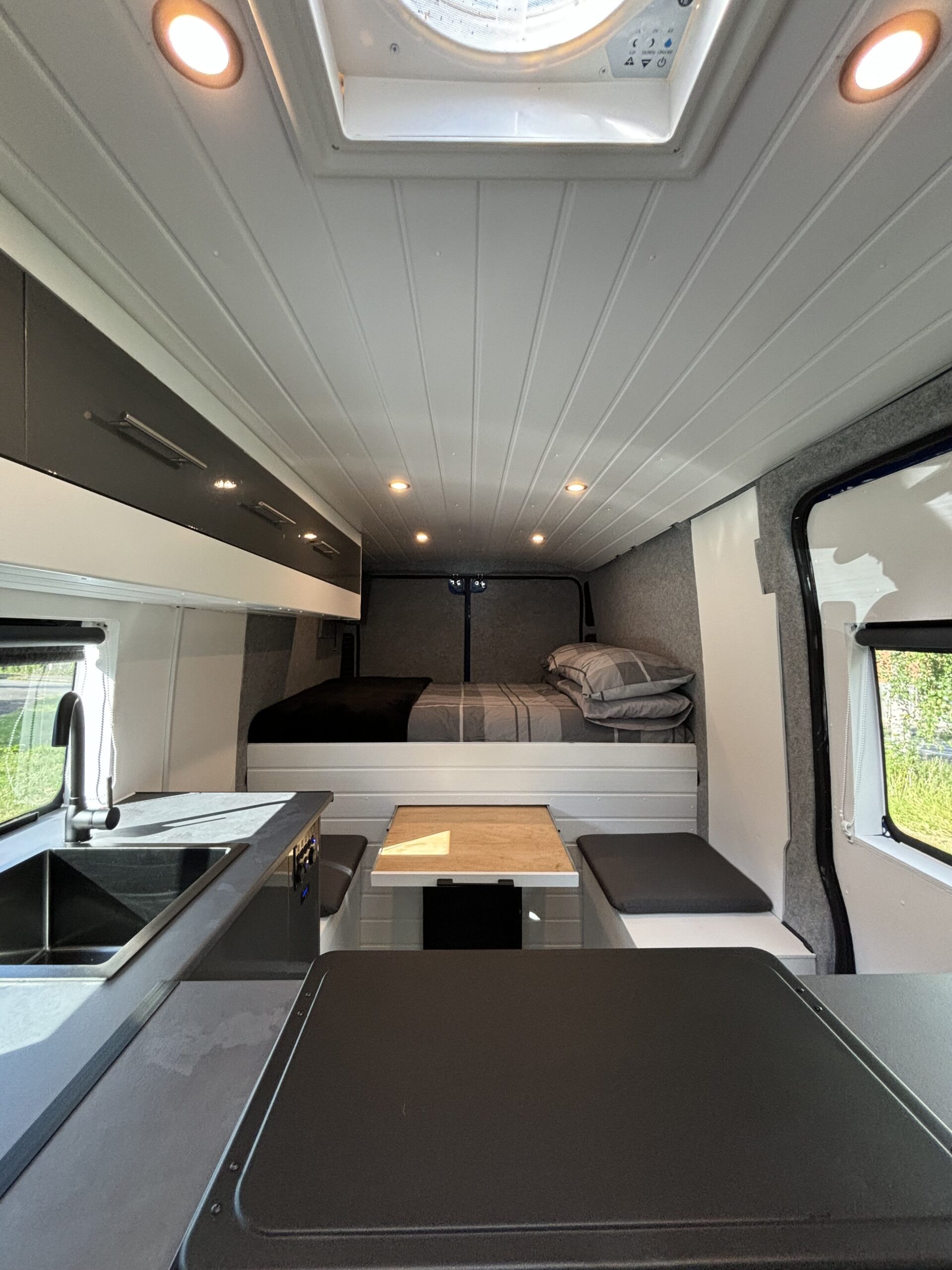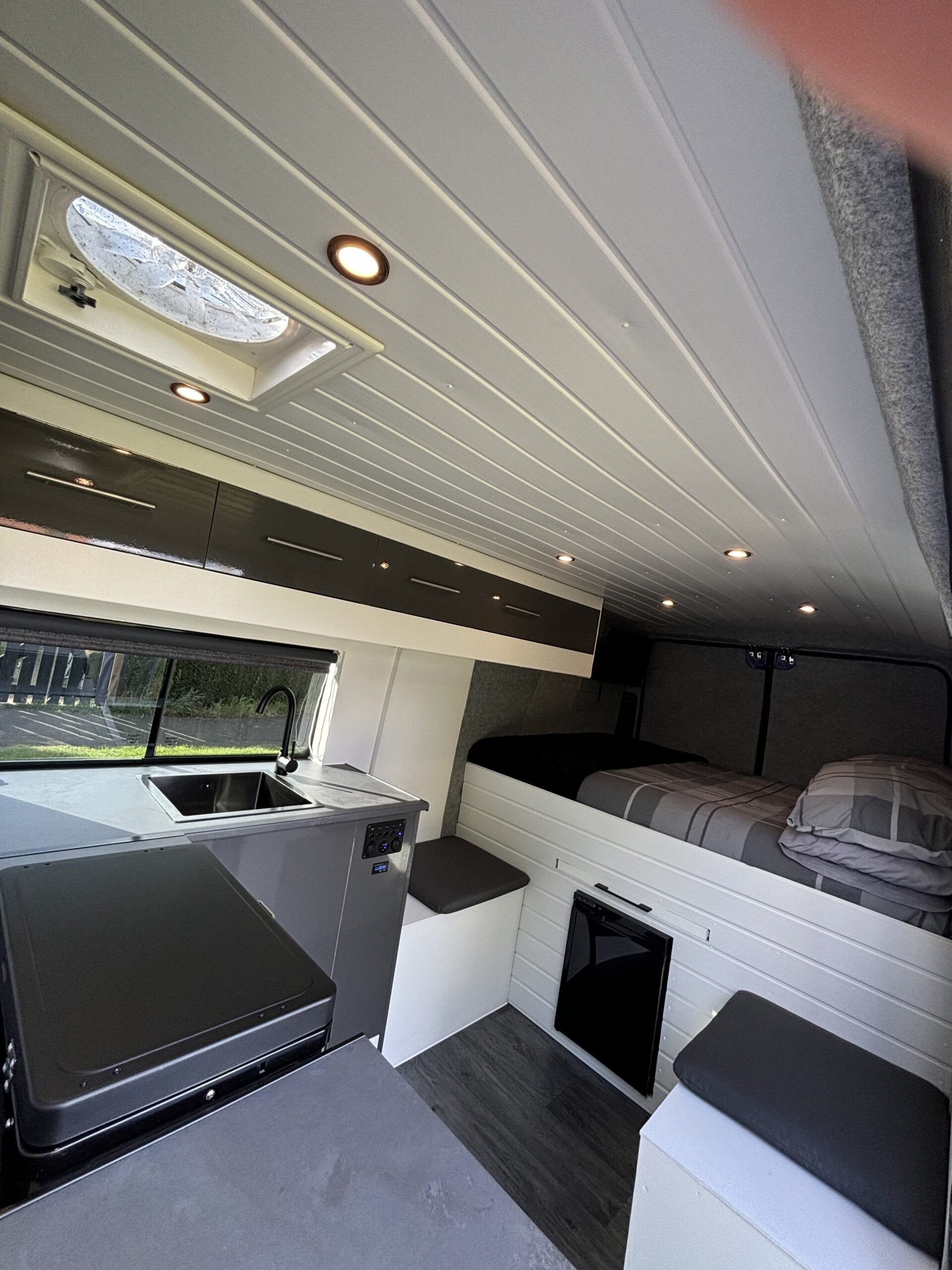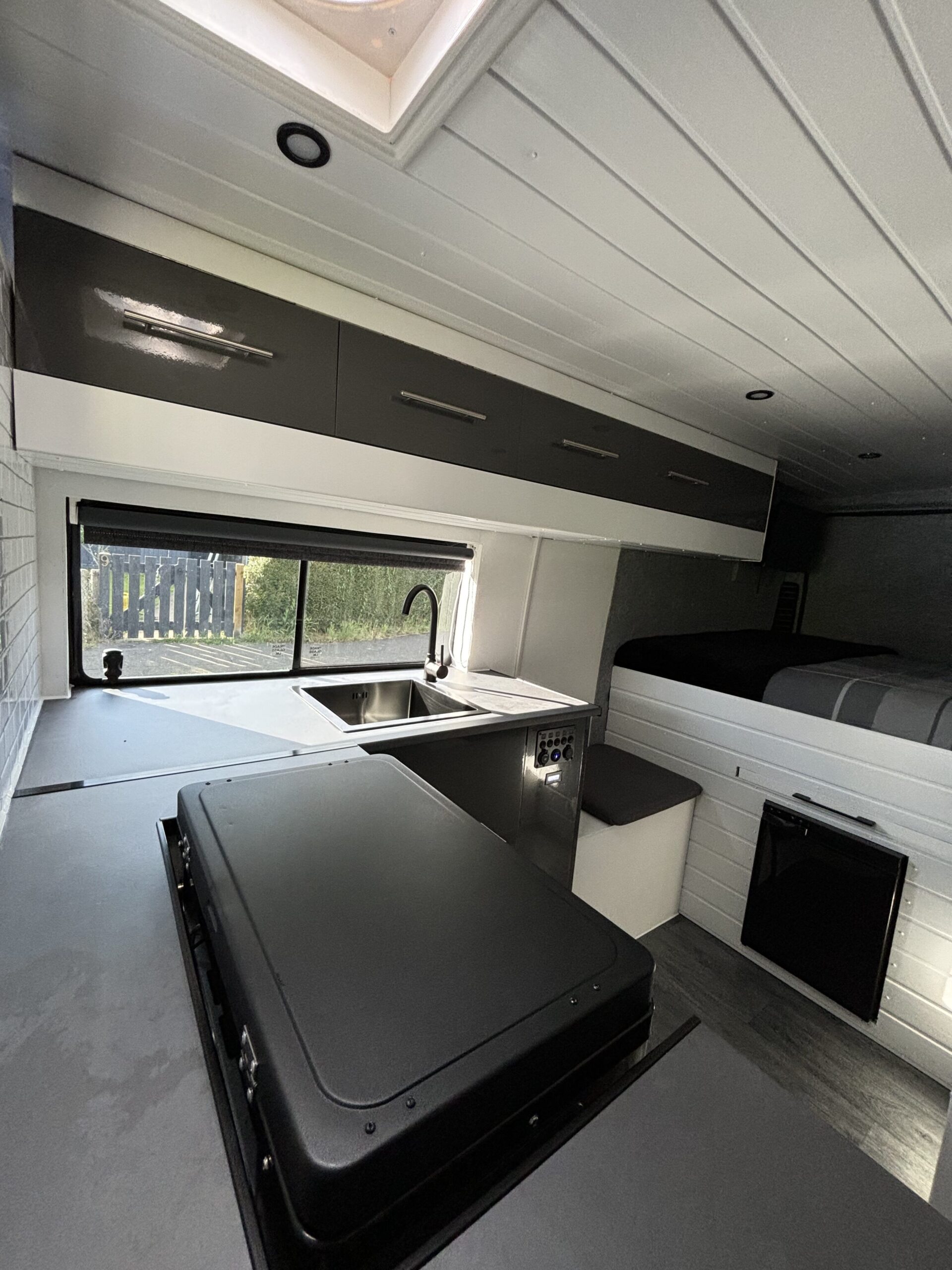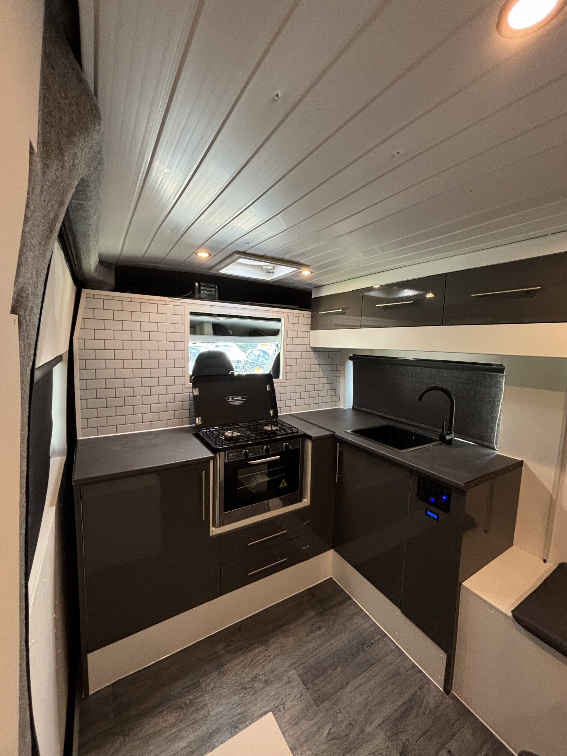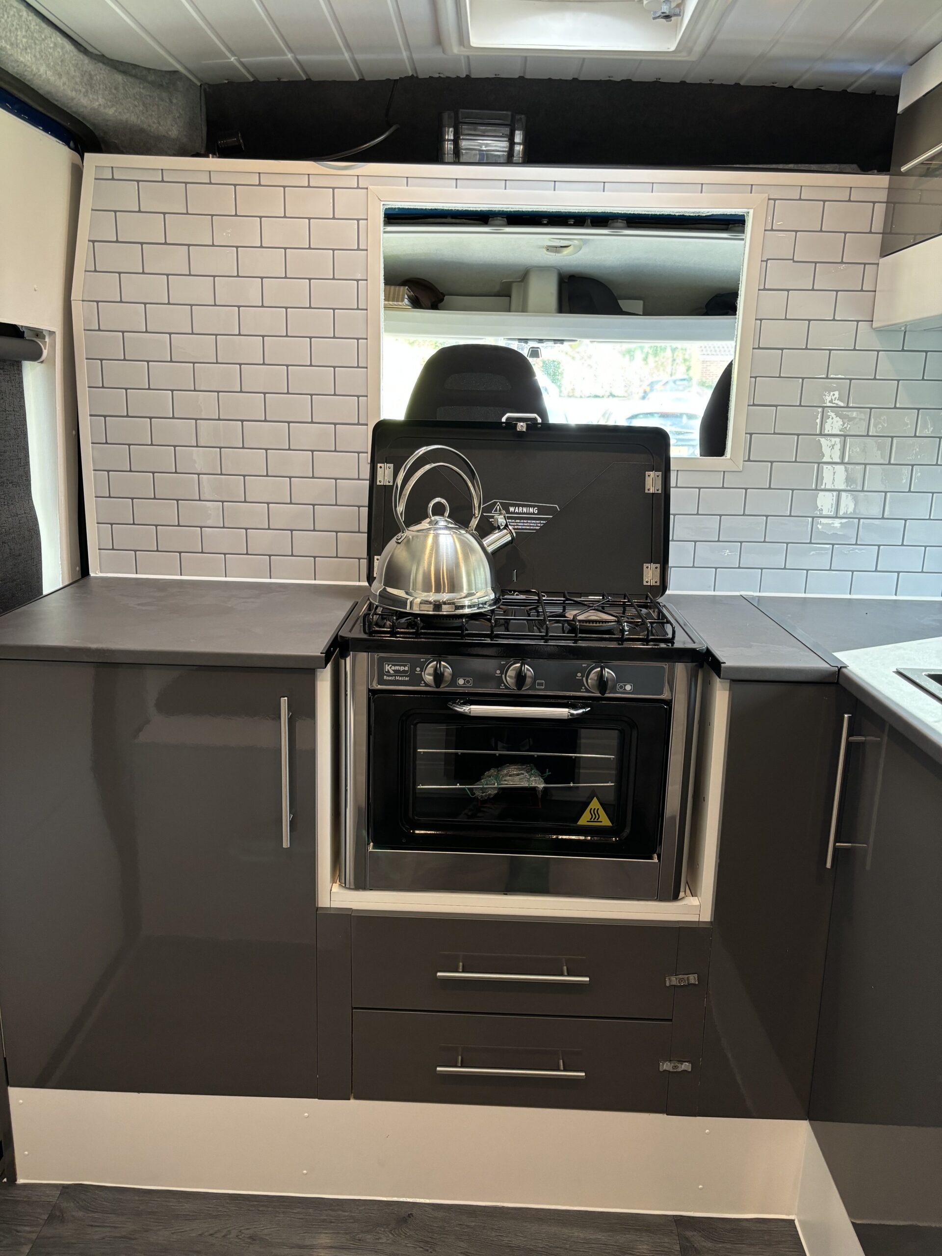 this van is very homely and cosey with a large kitchen area its very easy to prepare and cook great meals no matter where you are.