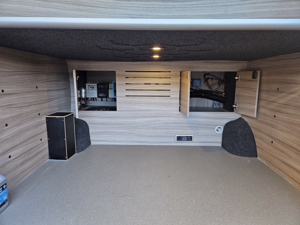 Large garage area under bed with access to batteries and Truma boiler
