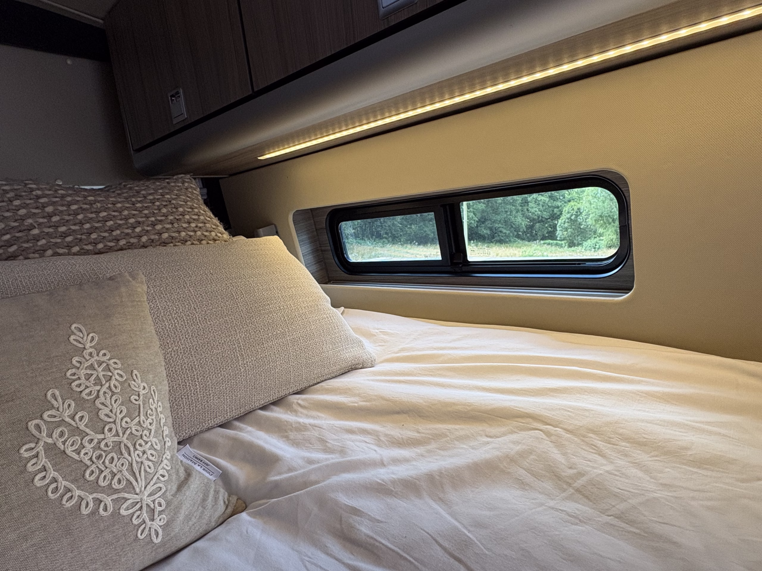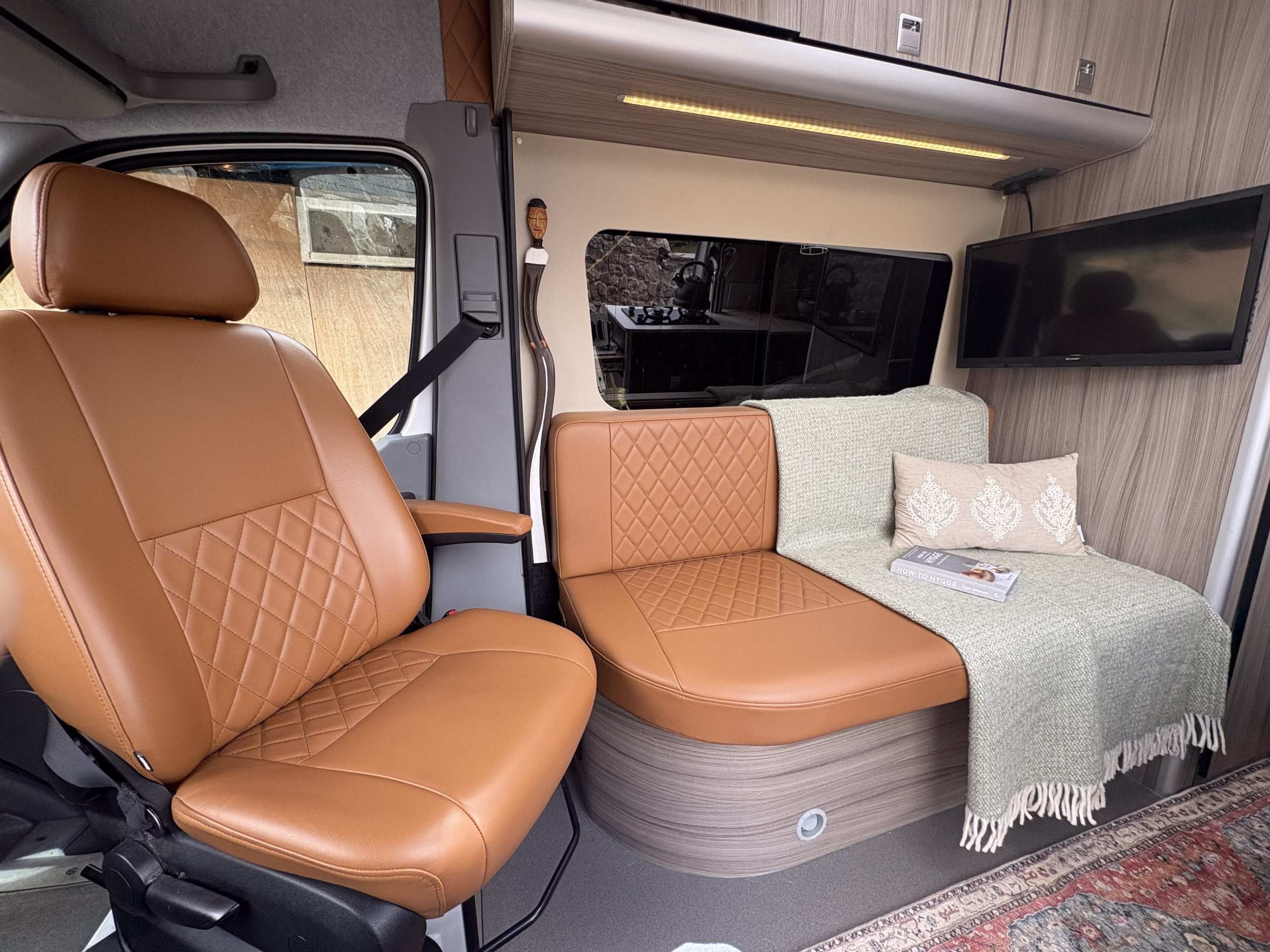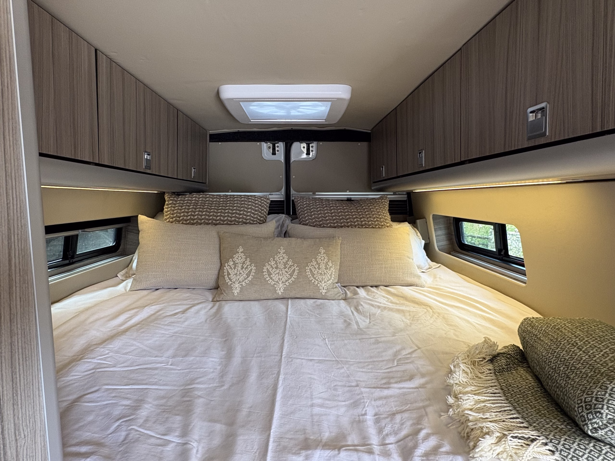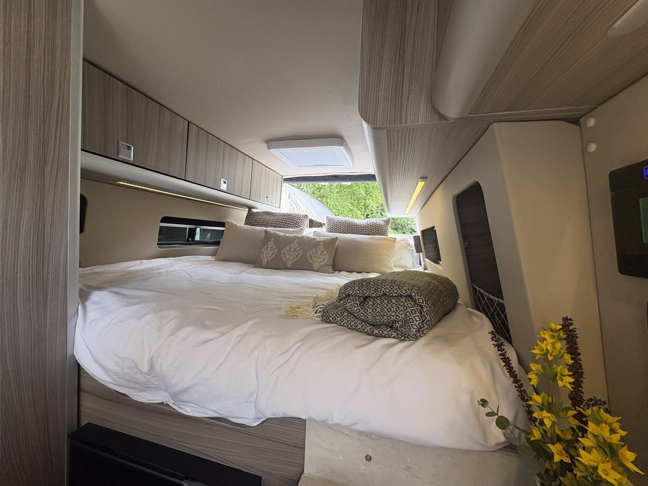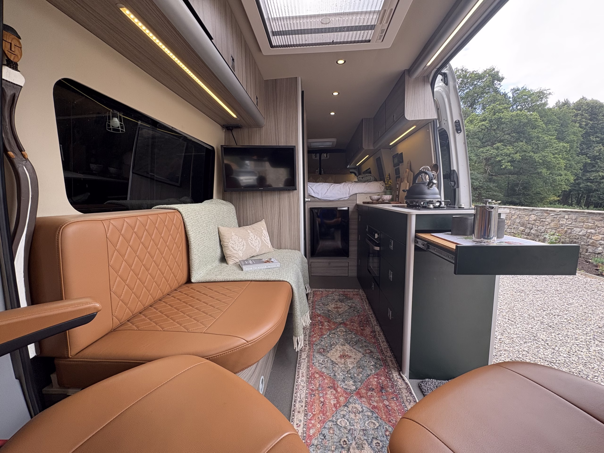 The wonderful van is fully off grid with all the bells and whistles. It is a super comfortable drive and has air conditioning in the cab area, cruise control and parking sensors. The living area is spacious with ample storage.