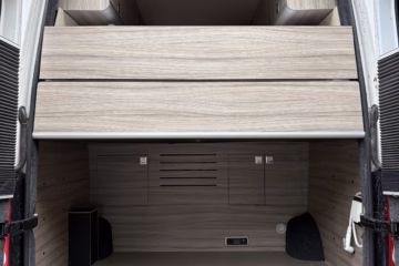 Evo overhead lockers above kitchen and bench seat