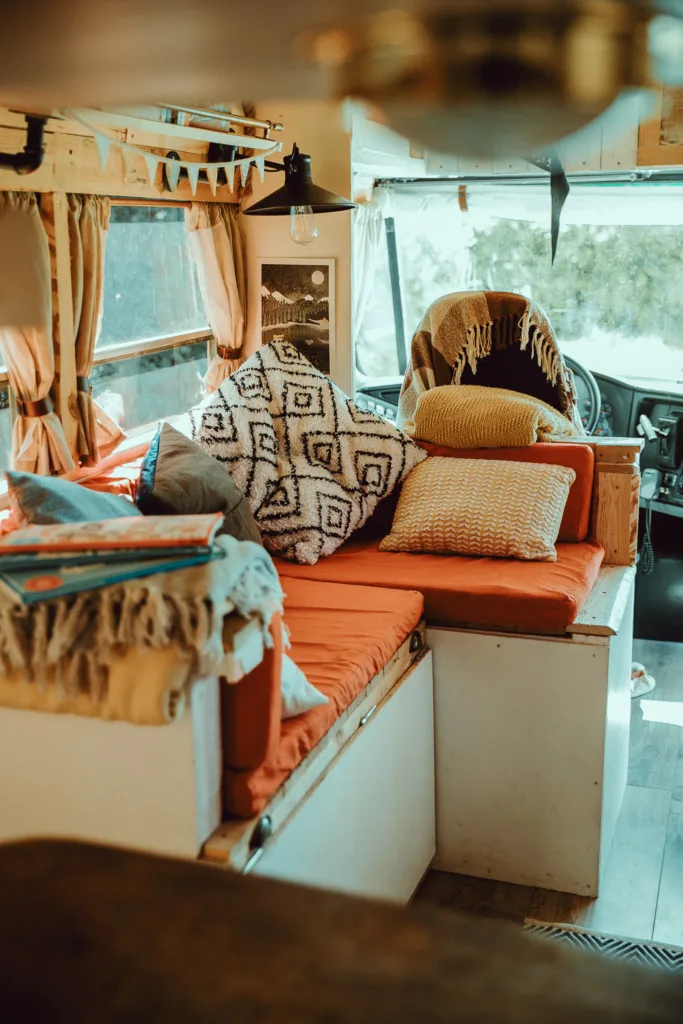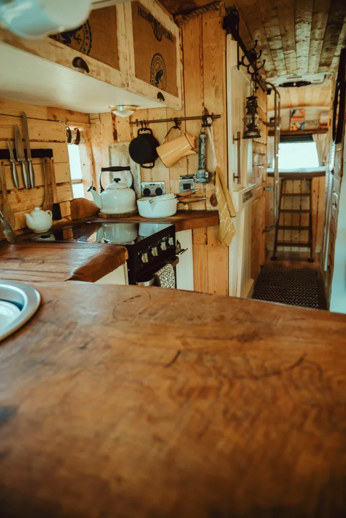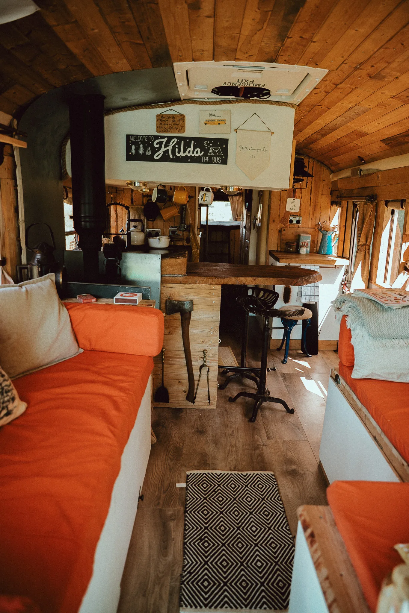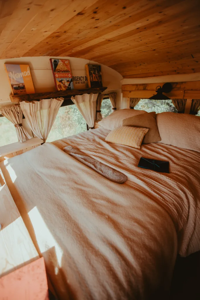 We lovingly converted her with reclaimed materials, she combines comfort, style, and adventure into one unforgettable vehicle. Ready for her next adventure, Hilda is a bespoke 2009 American school bus lovingly transformed into a luxury off-grid cabin on wheels. From her vibrant New York origins, Hilda brings cozy charm, sustainable living, and glamping flair all in one.
