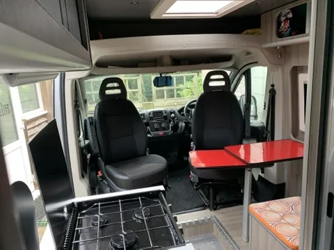 Once it was out of lease, I bought it from the finance company and began the conversion. Although technically a ‘Home Build’ I have a professional company in another sector that has overlapping skills. She is a two seater, two berth conversion. Please note there is no solar or shower, but this could be easily added. She is also on the V5 as a window van as ticking every box in the DVLA requirements for Motorhome, we missed that they require 2 windows on one side not including the passenger area (very odd rules they have).