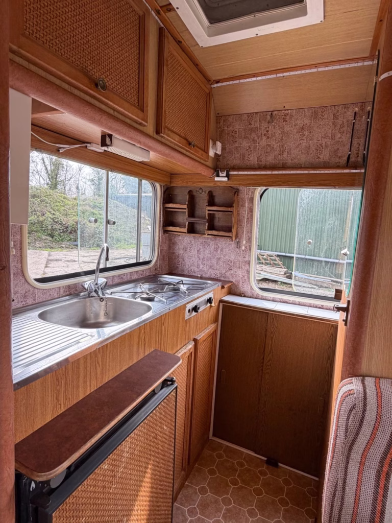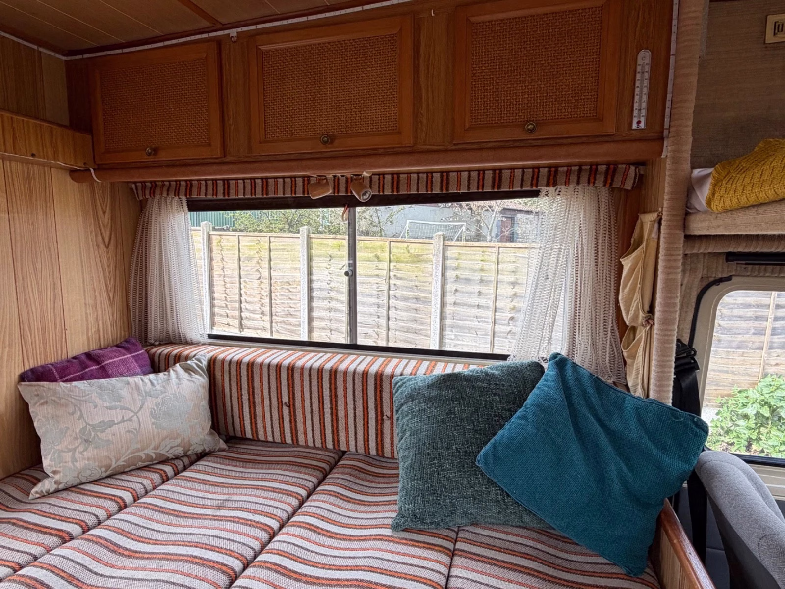 Featuring a 2L Pinto petrol engine, 4-speed manual gearbox and the iconic high-top Pilote coach built body, this is a one of a kind camper imported from France. It is left-hand drive and features fully working LPG with UK connection. It’s a delight to drive, fits in a standard parking space and has an awning for those sunny days out. This is definitely a camper for the slower pace of life, reaching a maximum of 60mph.