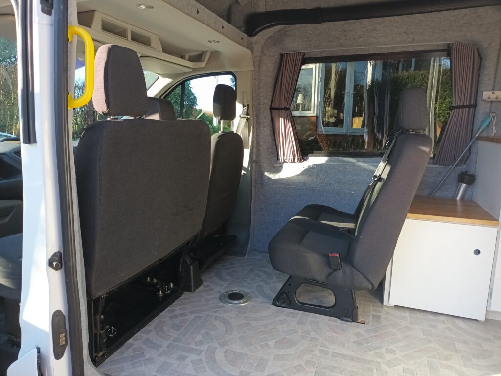 The van has been converted and regularly used for a family of four with two teenage children with great success. With smaller children five would be possible. The intention has been to keep all requirements within a 6m long van allowing for easier manoeuvrability in rural road and car park type situations.