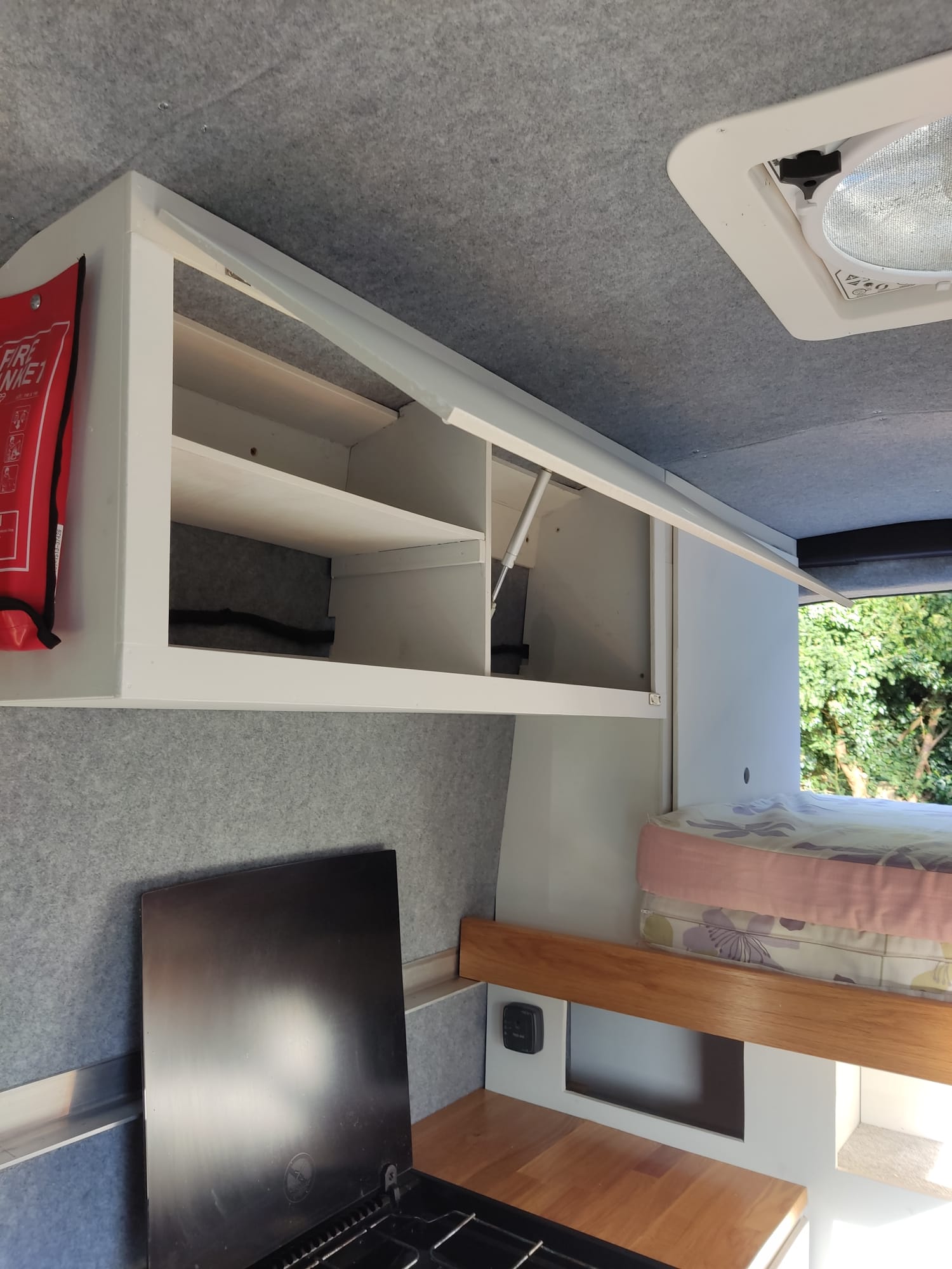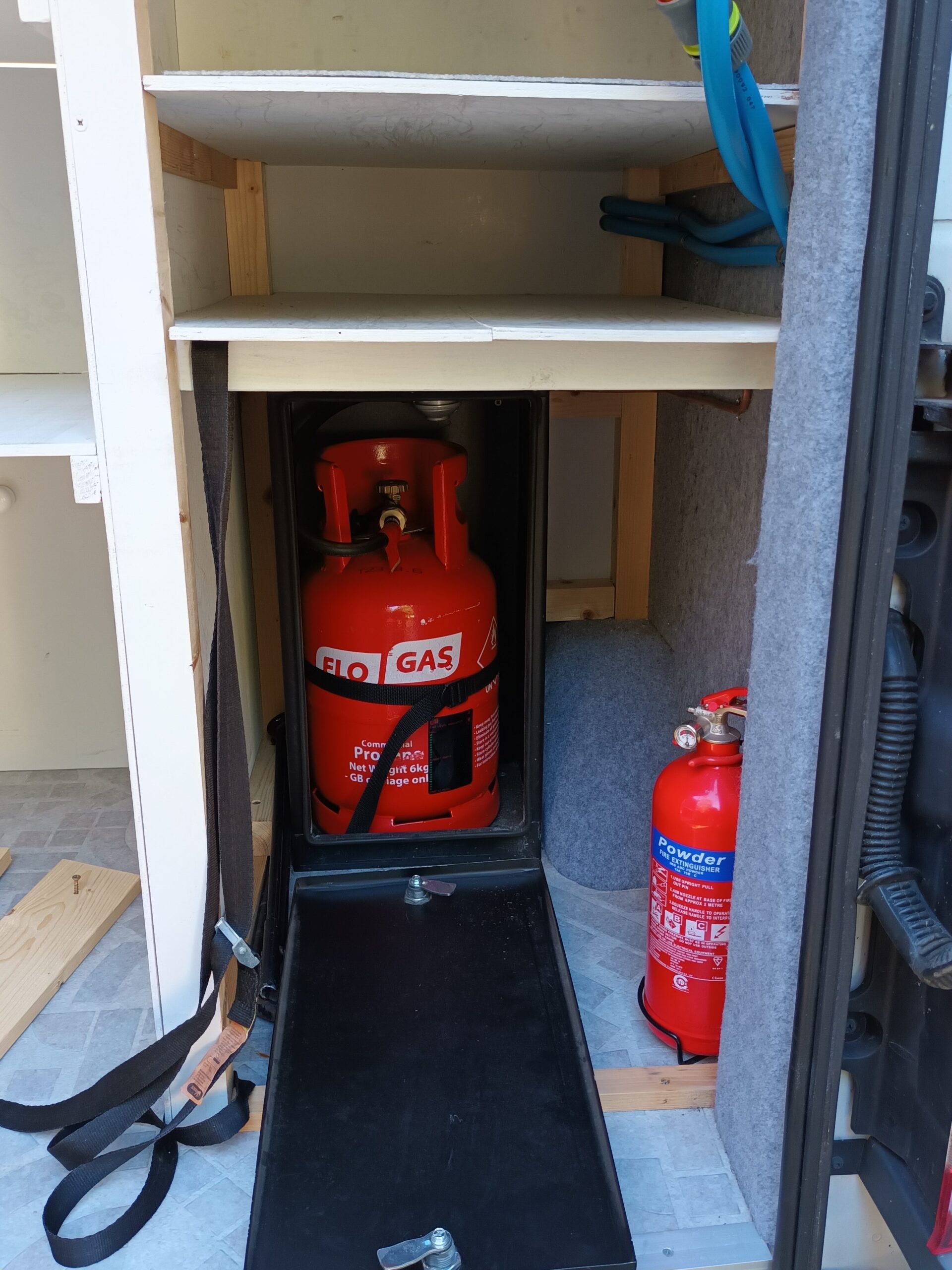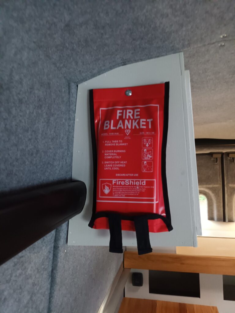 – Kitchen mounted fire blanket and rear mounted fire extinguisher.