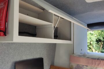 Under the bed and accessible from the rear doors is ‘garage style’ large storage area, ideal for boots, coats, toys, camping equipment etc. This area includes storage for the gas bottle and the electrical system.