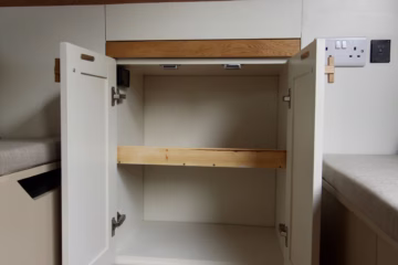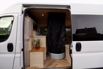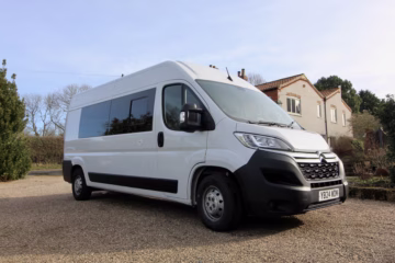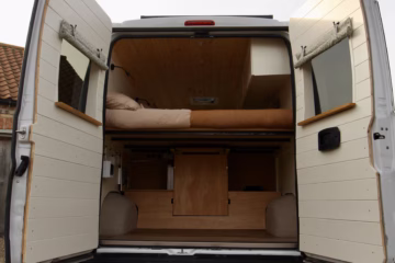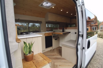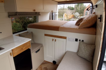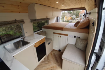 Professionally converted Citroรซn Relay campervan expertly built by Cannon Conversions. Designed for couples, with a fixed double bed, diesel heating, full off-grid electrical system, solar, hot water, removable internal shower, and premium finish throughout. Our campers are built with the capability of both total off grid travel or campsite touring.