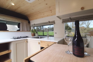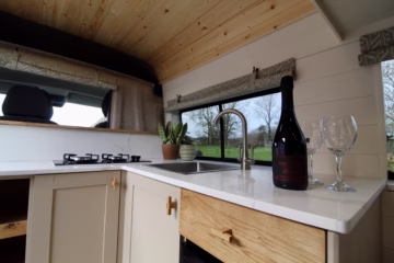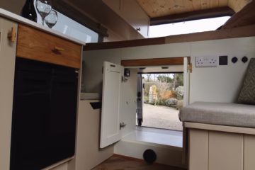 Eva has an integrated hot water system which uses our newly designed automatic 18 litre solar heating immersion heater. It’s thermostatically controlled and uses excess power from your solar panels to heat your water. Perfect for off grid living!