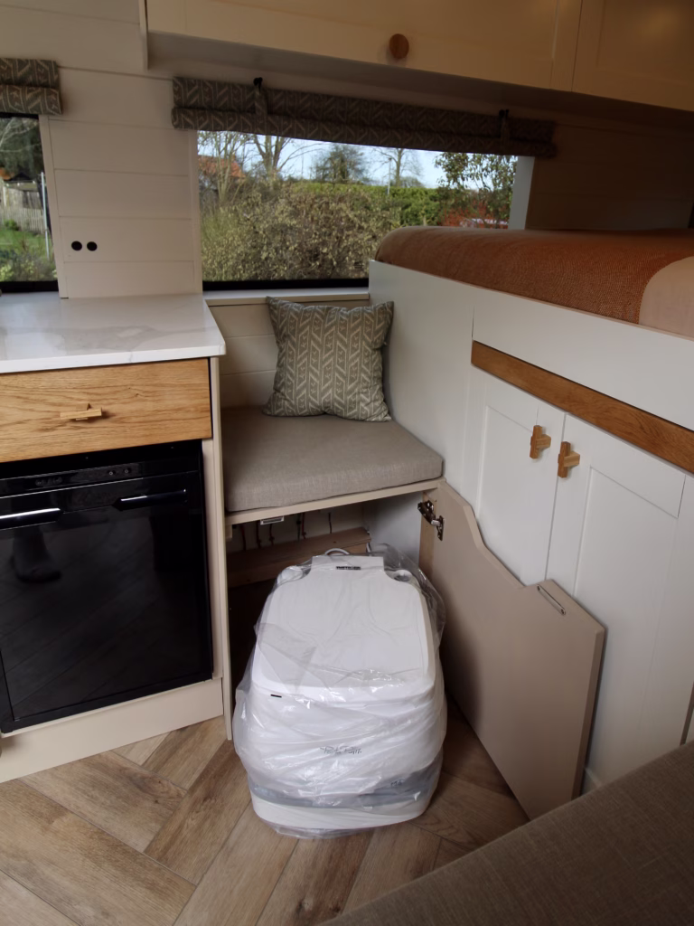 It also has a divider to keep your stored items away from the electrics but with easy access to both fuse boxes, leisure batteries, diesel tank and heater.