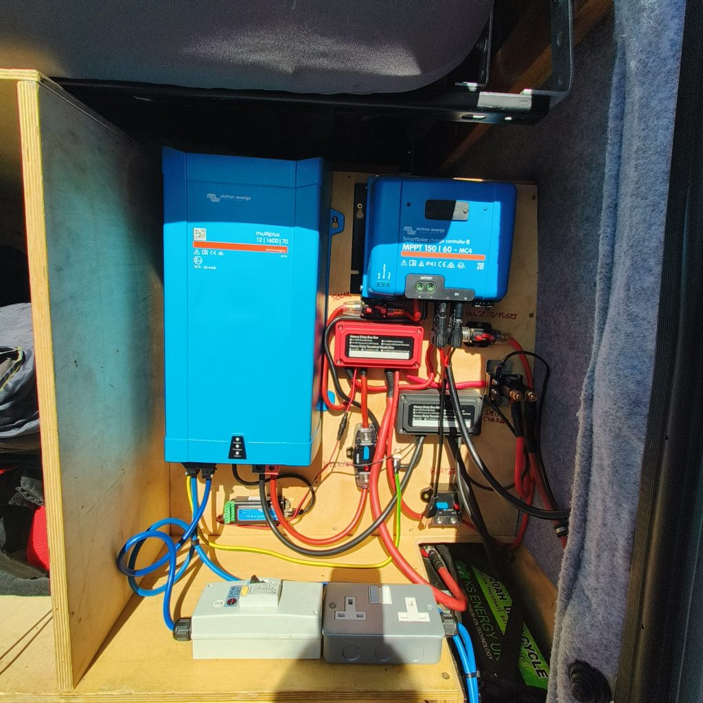 Victron Multiplus 12/1600/70 with Bluetooth dongle.