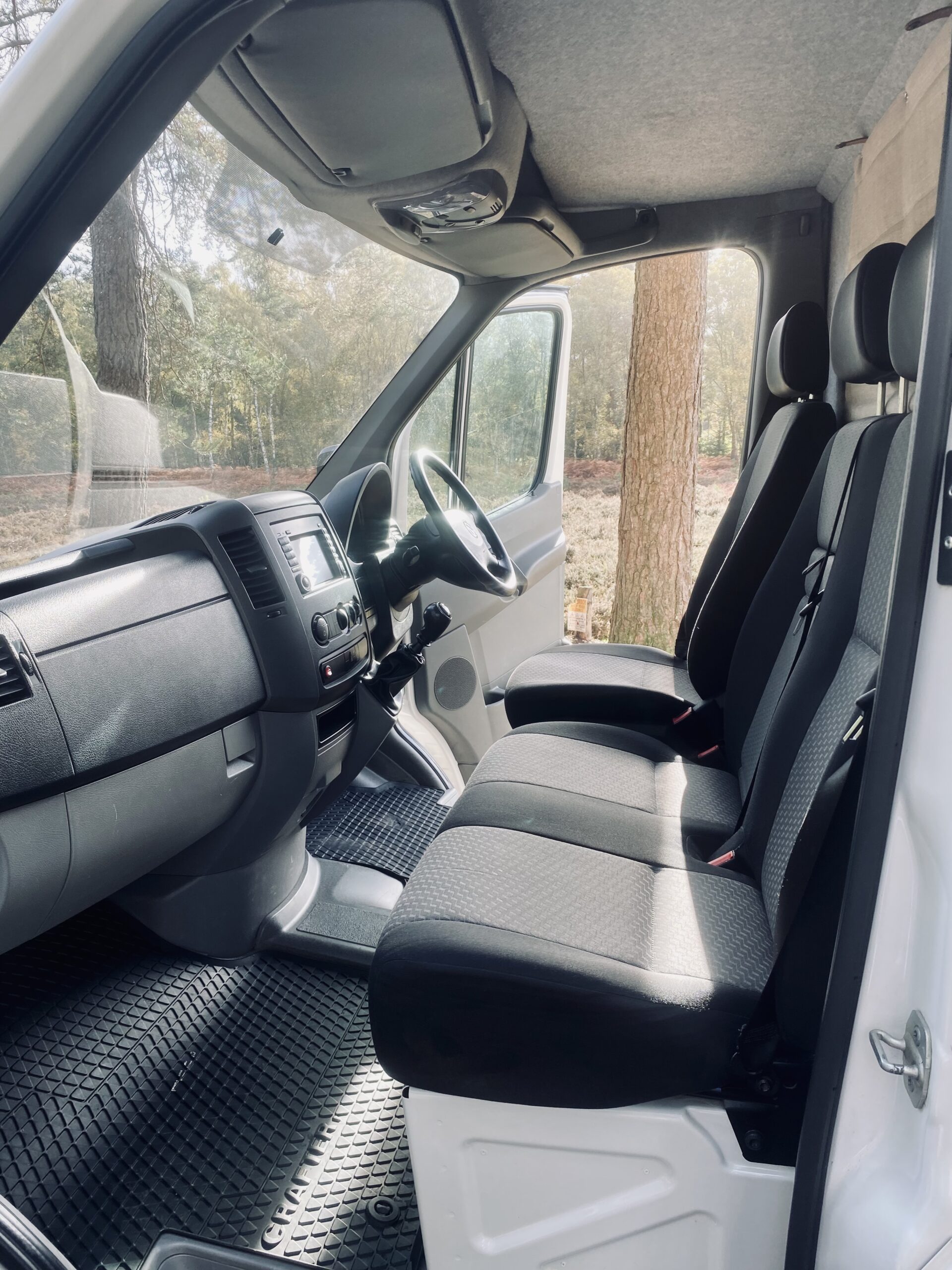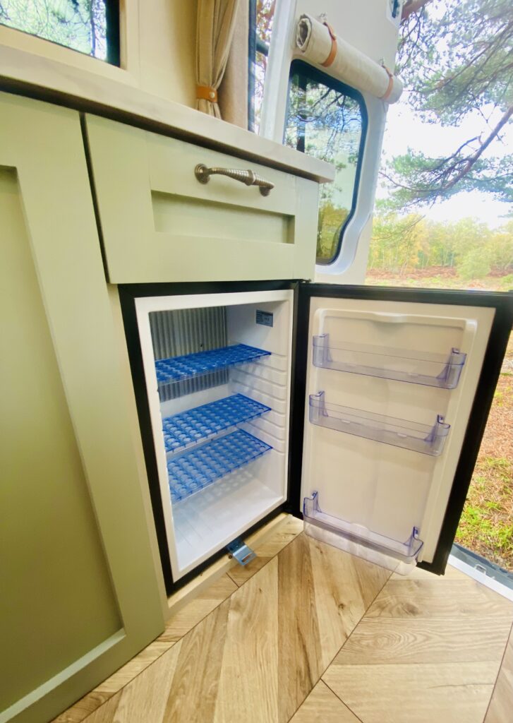 We first prepared the van by treating any rust and imperfections. This was followed by sound deadening and insulation which consists of dodo dead Matt, celotex and a space thermal blanket. These all have very high thermal values which we have personally tried and tested before. The insulation was then lined over with reflective vapour barrier to remove the possibility of any condensation build up. We have thermally insulated custom blinds for all the windows to minimise any heat loss. Finally the walls were lined with hard wood ply painted in a tough and durable valspar paint allowing you to easily wipe away dirt.