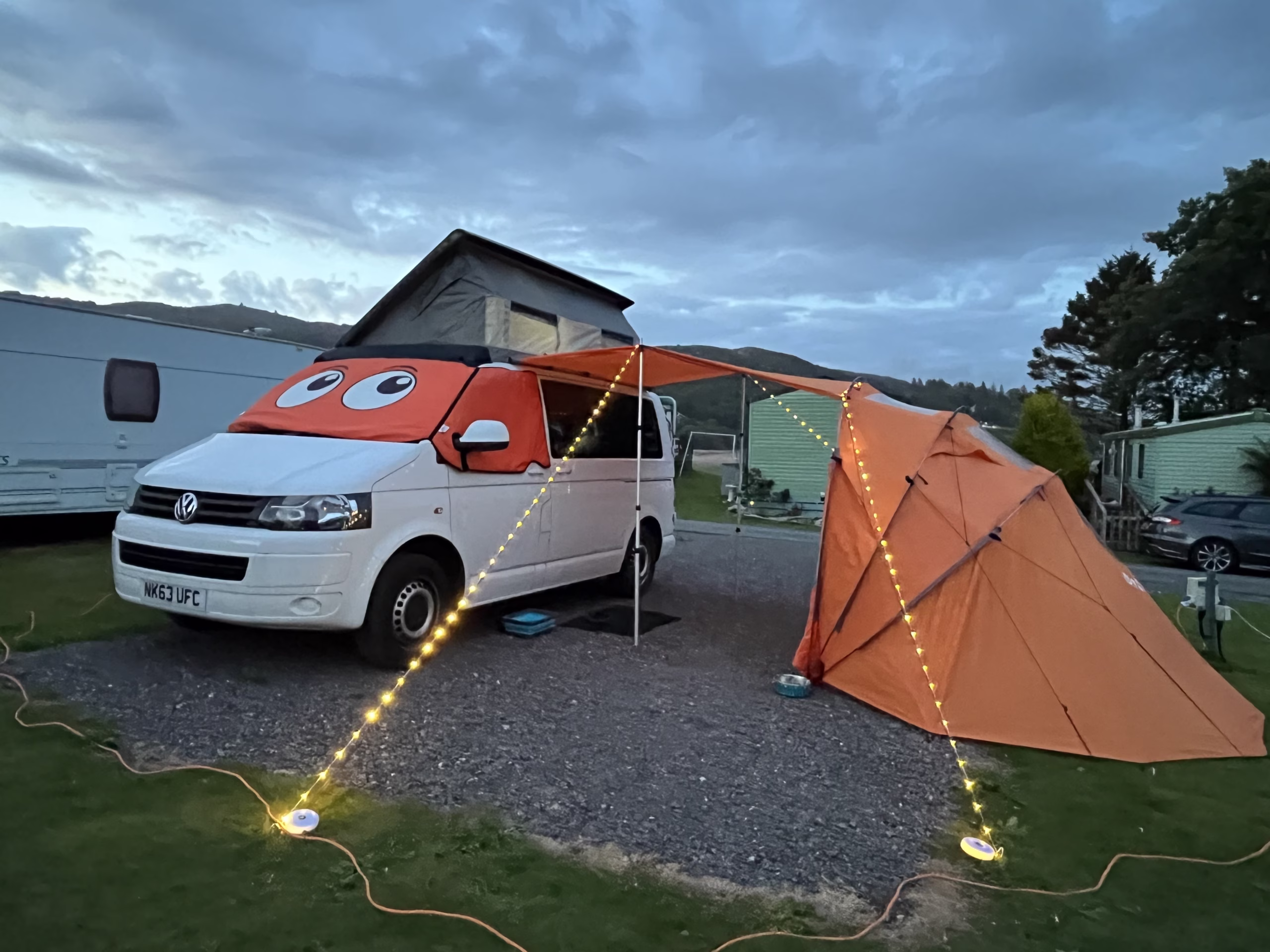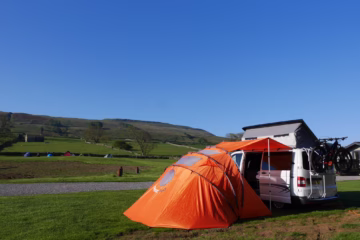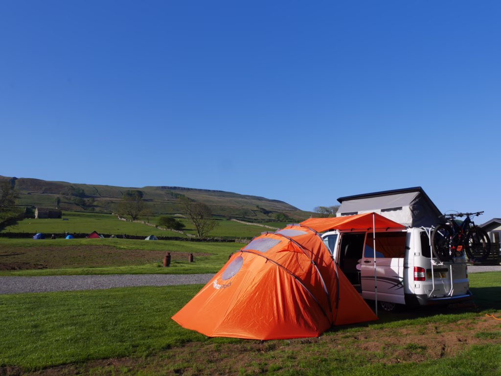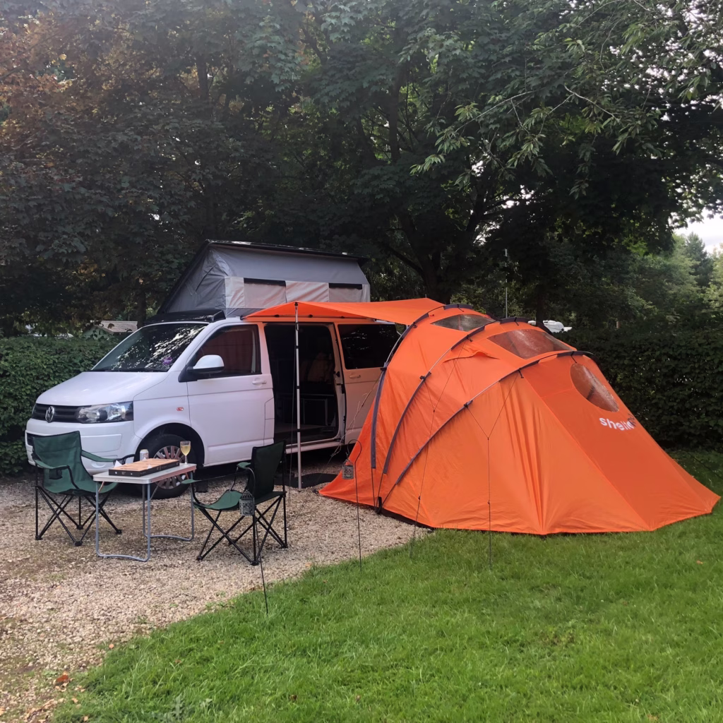 Orange ‘Sheltapod’ as an alternative drive away awning option providing additional living or sleeping pace http://sheltapod.com