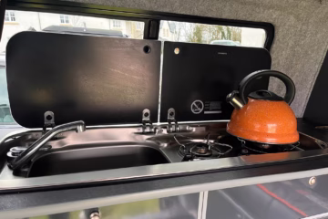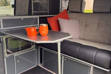 Electrics: A split-charge system for the leisure battery, 12v sockets and lighting, and 240v hook-up with a mains RCD and contact breakers are included.