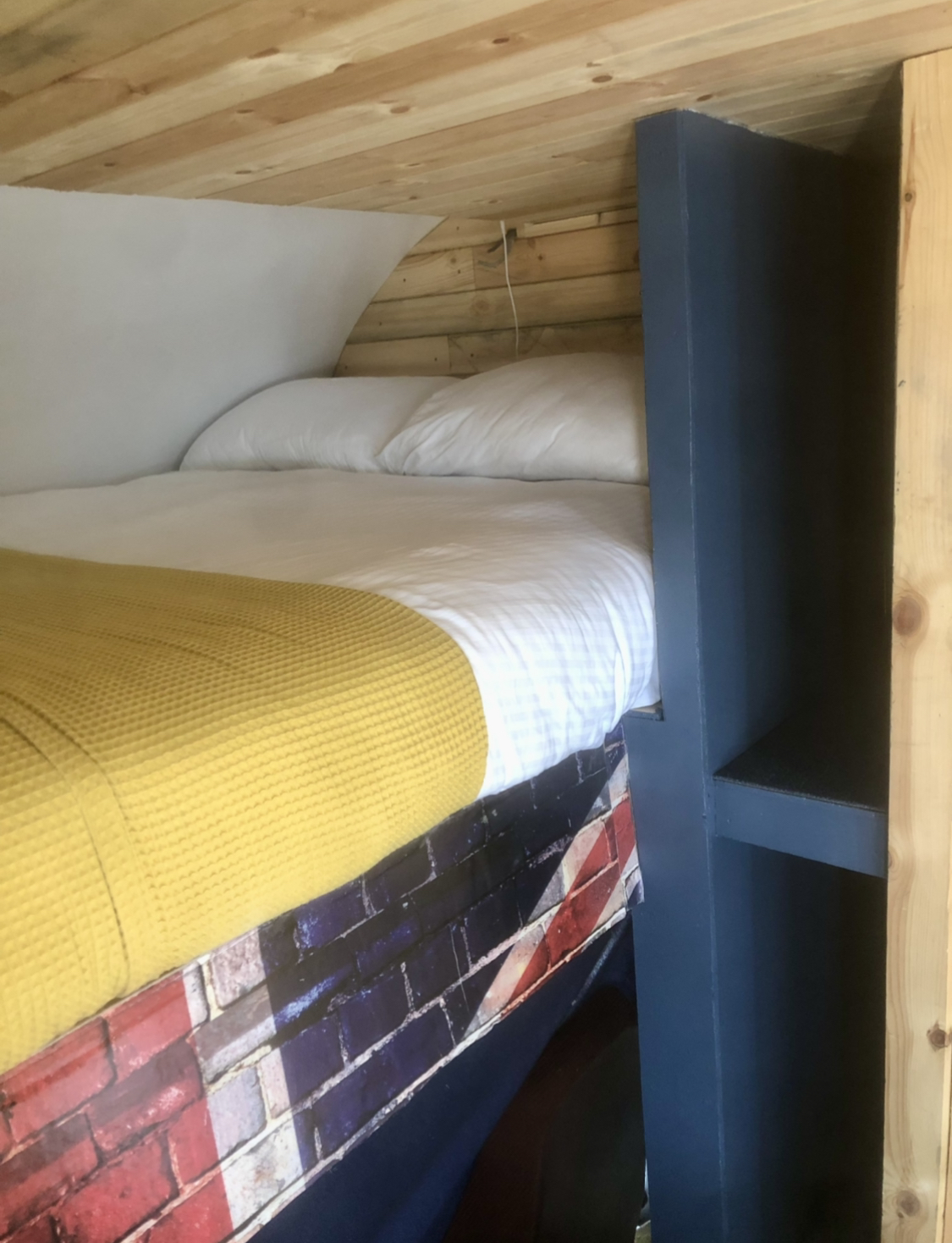 Double bed up in the Luton area above the driver seats.