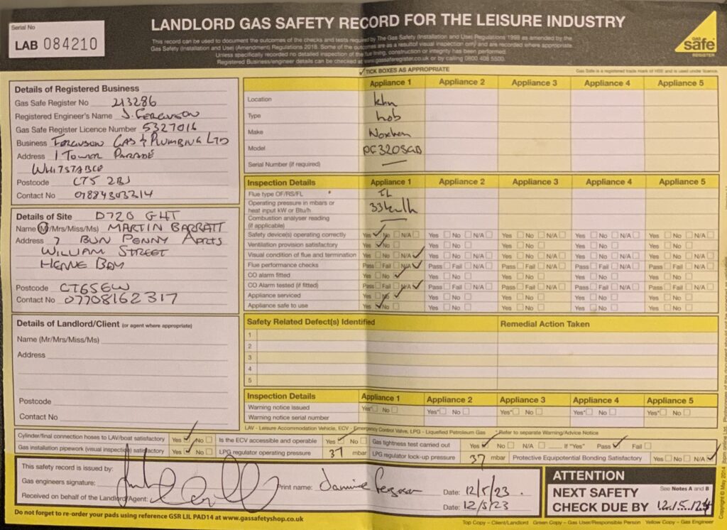 Copper Gas feed pipes fitted by engineer for 2 ring stove and shower room.