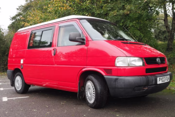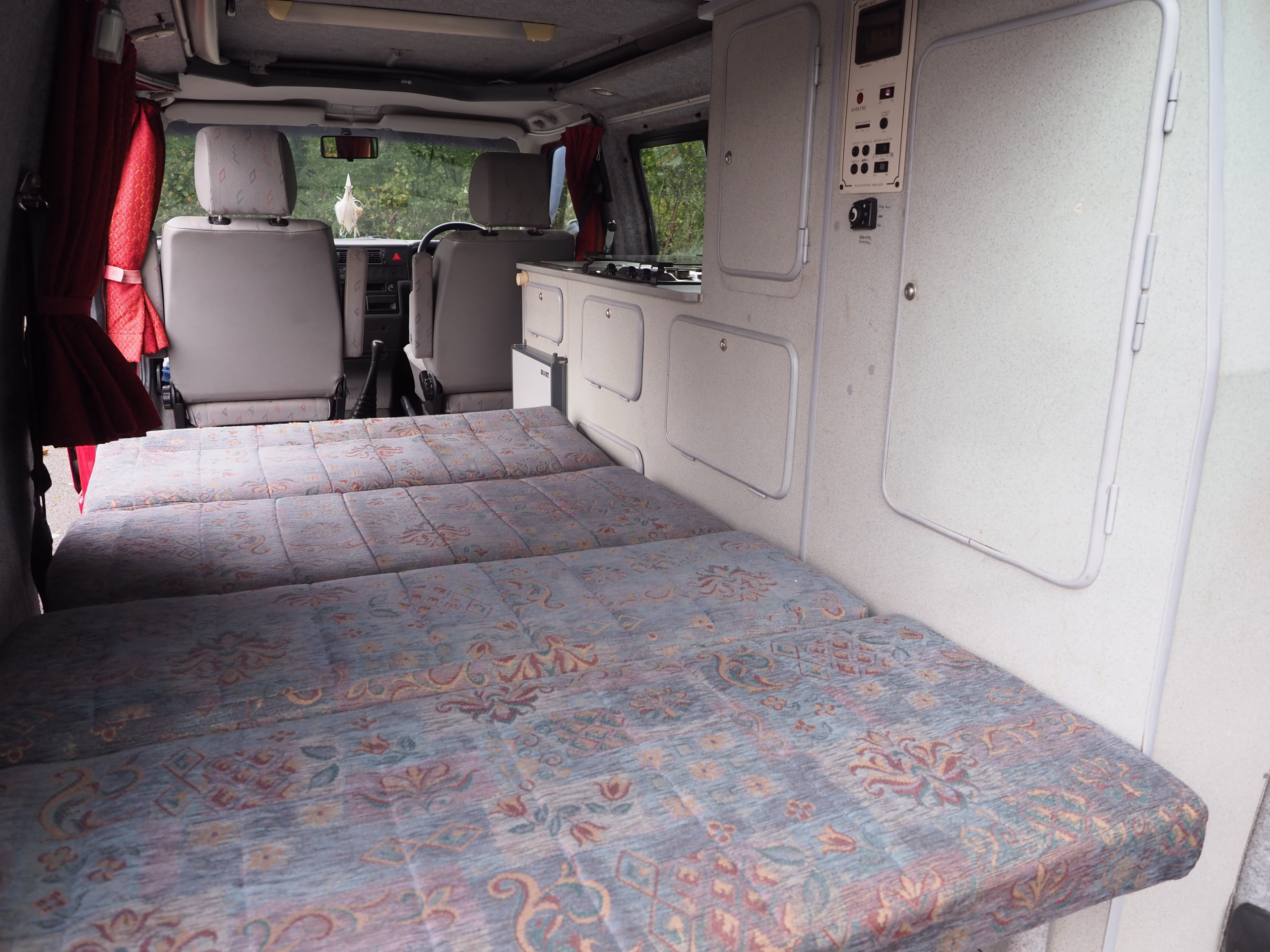 This 2.5 diesel T4 has been ours for the past 13 years and 97,000 miles. She has been lovingly cared for and is in very good condition as a vehicle and as a conversion – all features are working and she is running very well. We have MOT’d her until Nov 2026 and have her full service history from new ( 2 pervious owners). Cruise control, headlight upgrade but original radio/cassette! Tow bar for bike rack, roof rails for kayak rack. 4 good tyres plus spare.