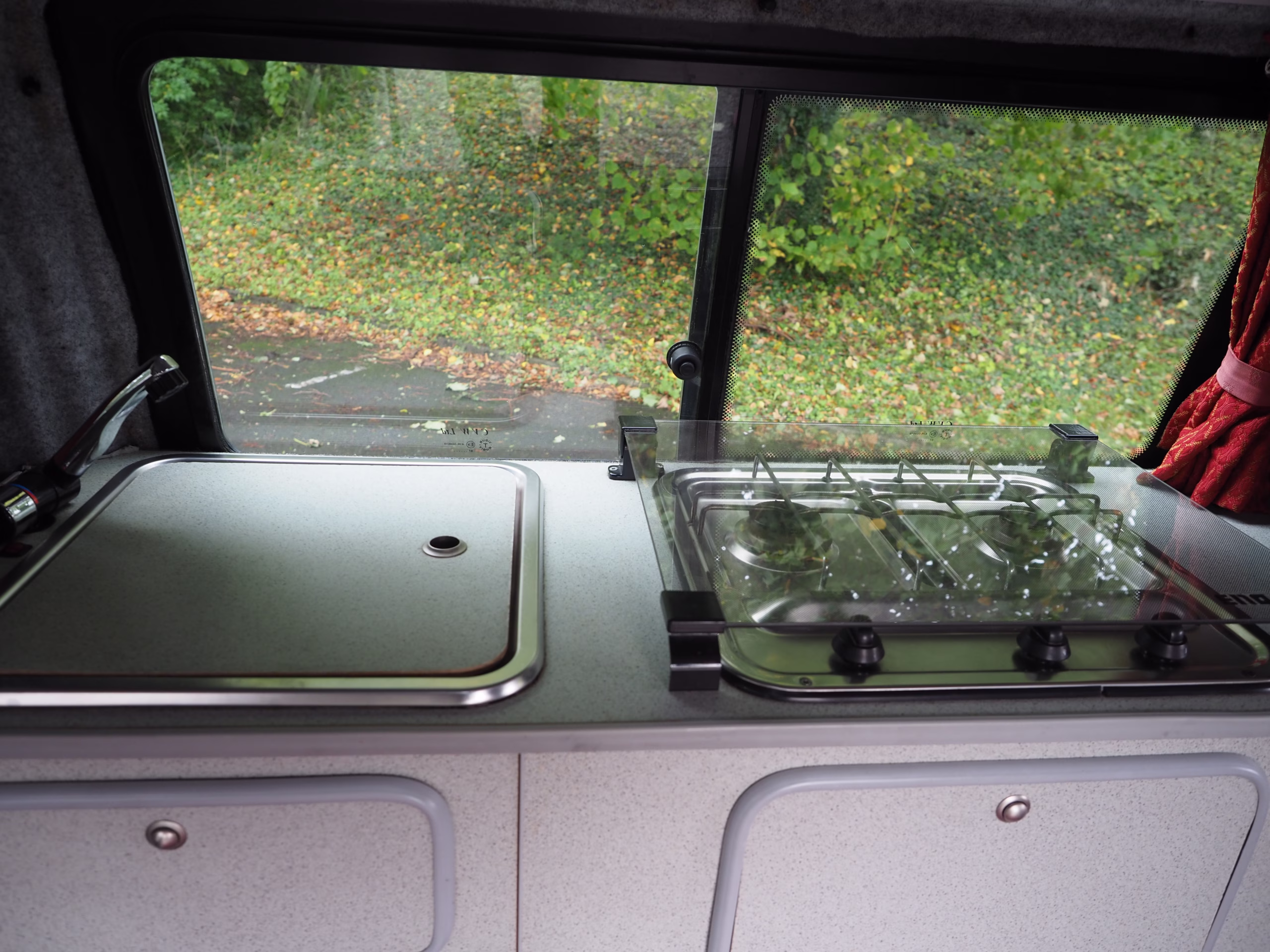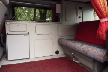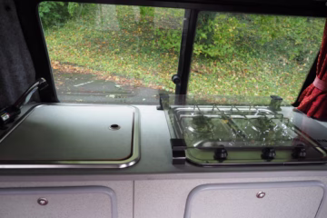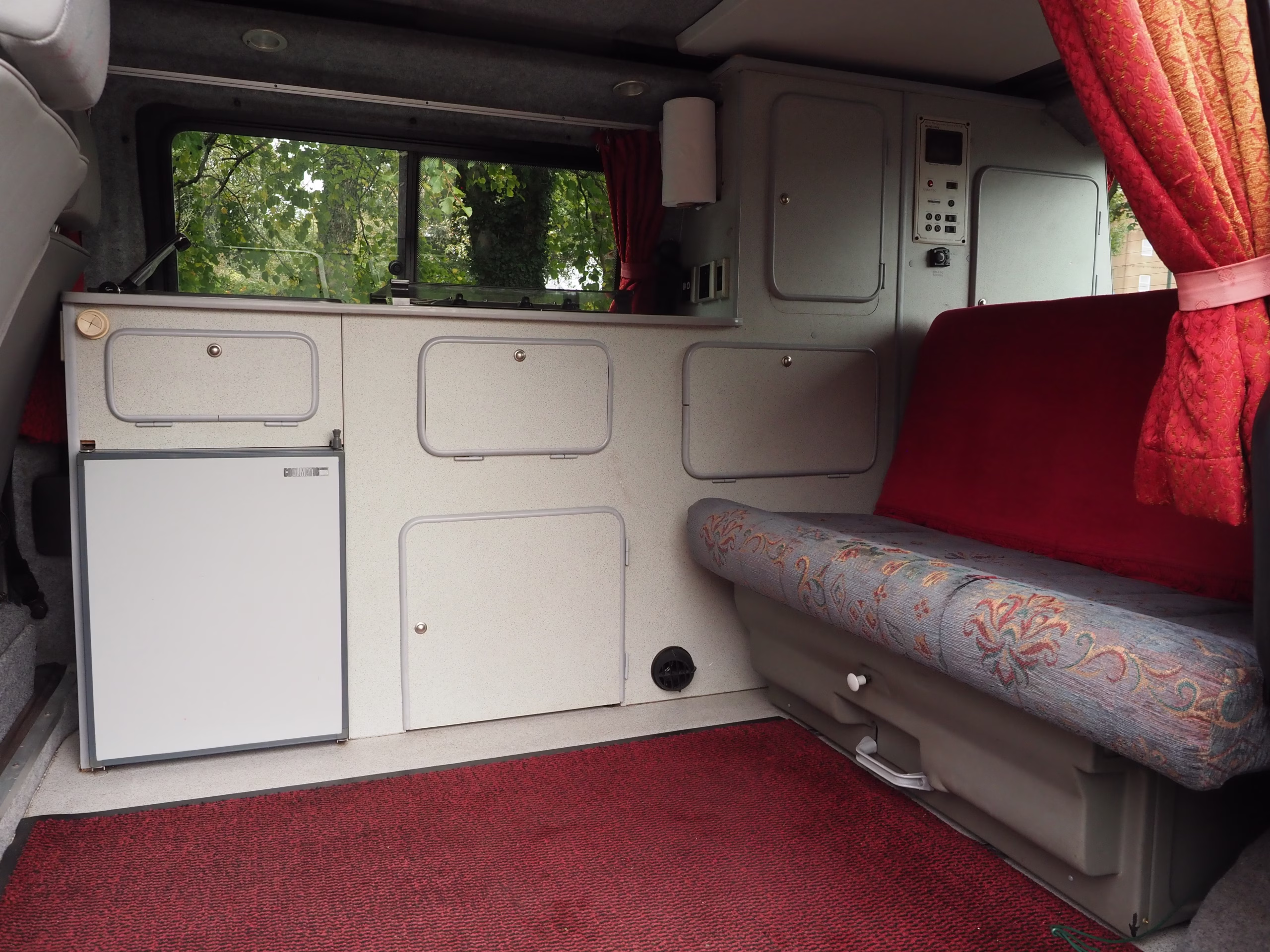 Vantech, Kendal conversion (no longer operating) from new. All in good working order – diesel heater, side lift pop top, mains 240v hook up and leisure battery ensure lights, fridge and diesel heater operation with USB sockets via cigarette lighter or 240v three pin plug sockets when hooked up. 2 ring gas hob with grill, sink with pumped fresh water from tank and a grey water tank. Small table for meals/playing cards! Front rotating passenger captains chair. Various cupboards and under seat storage. If you’re used to comfortable apartment holidays – it’s tight, if you’re used to a two man tent then it’s comfortable living.