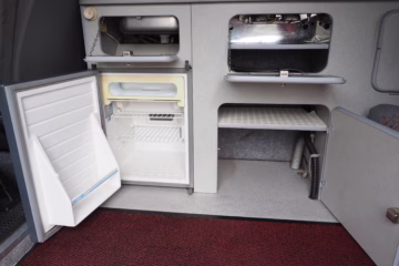 Conversion – side lift pop top, rock and roll bed sleeps 2. Diesel heater, 2 ring stove and grill, sink with pumped freshwater tank and grey water tank. Leisure battery and 240v/12v supply for interior lighting. Fridge.