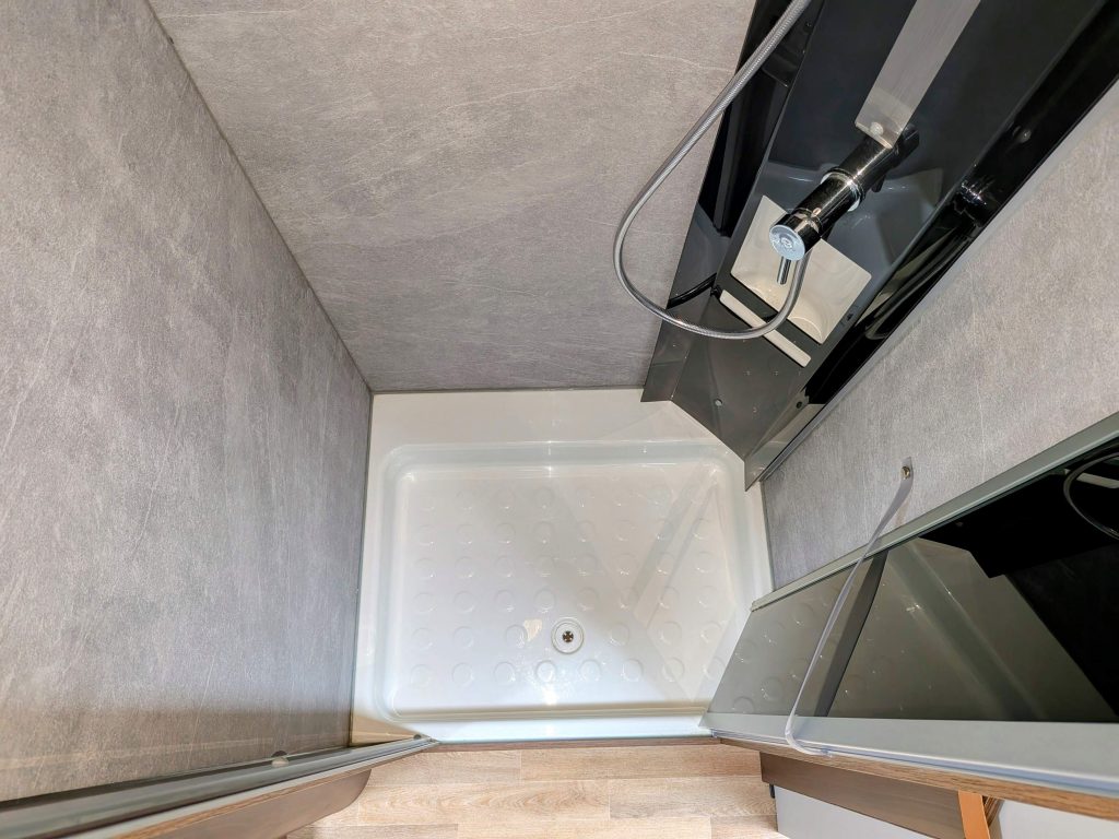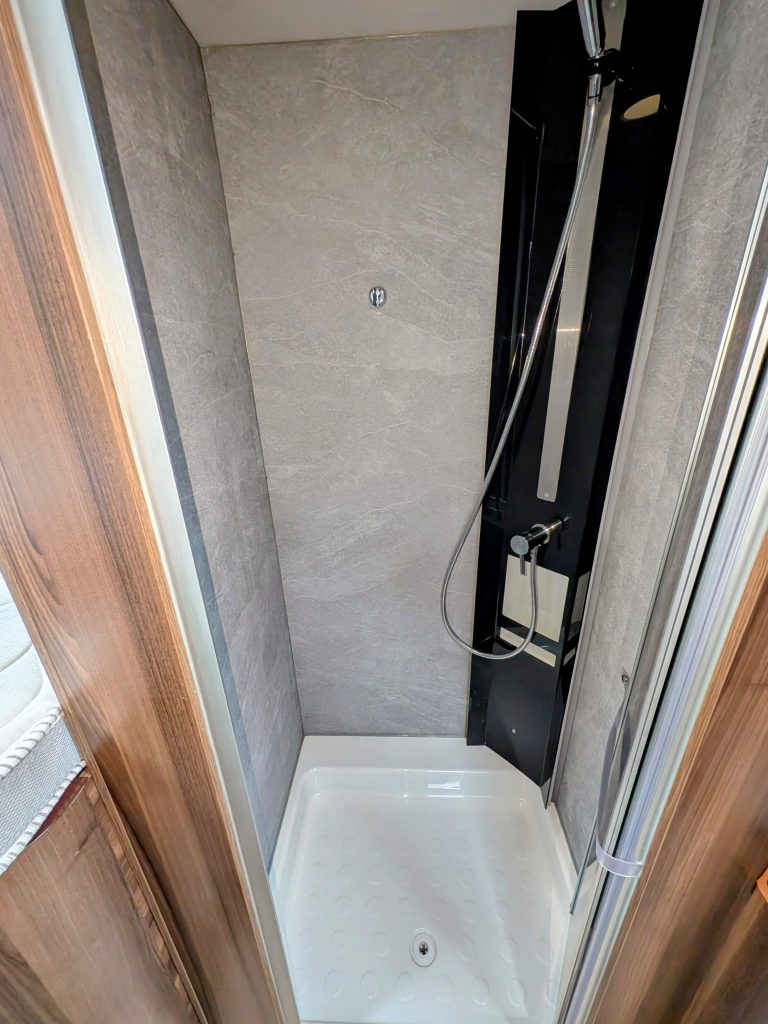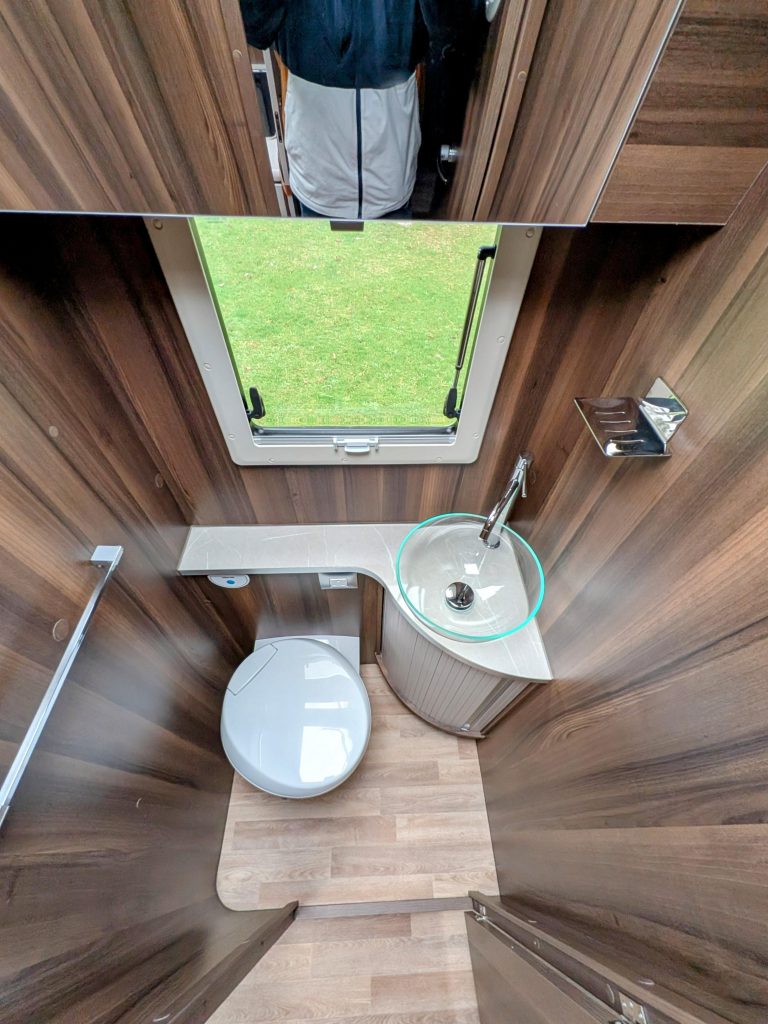 Ensuite separate shower and toilet rooms with rainfall shower, Thetford toilet with hand wash basin