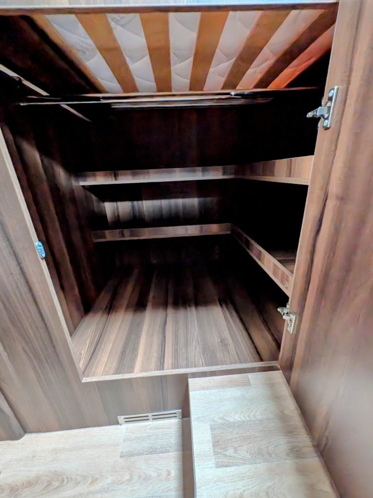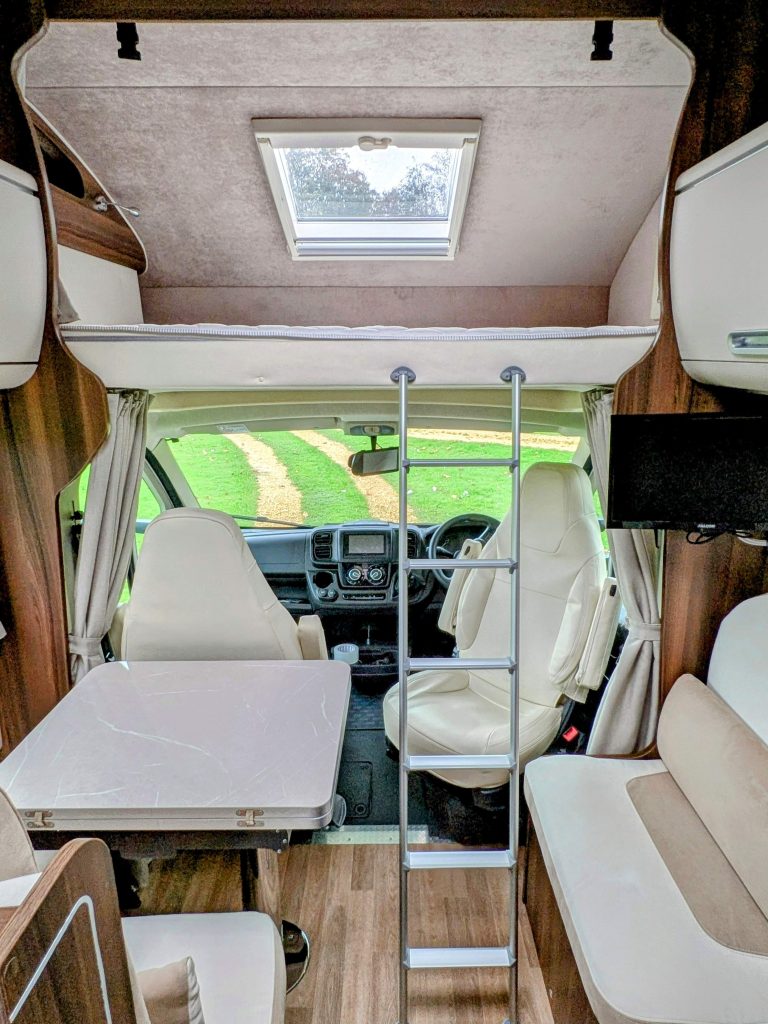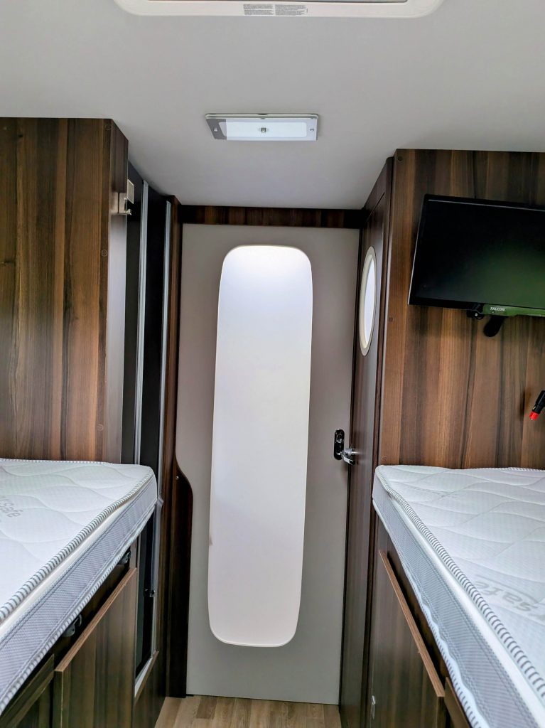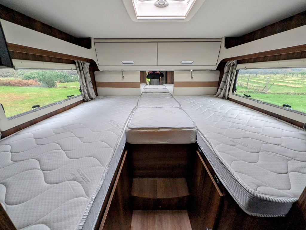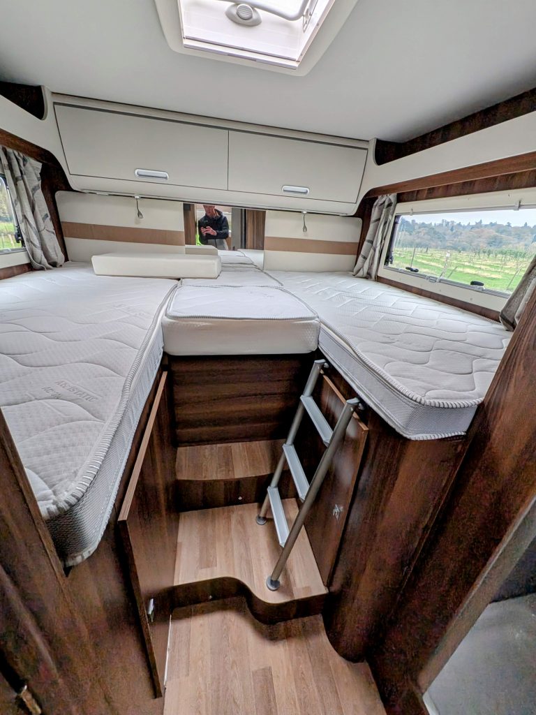 Rear Twin Single beds which can convert into a double – Wardrobe under bed