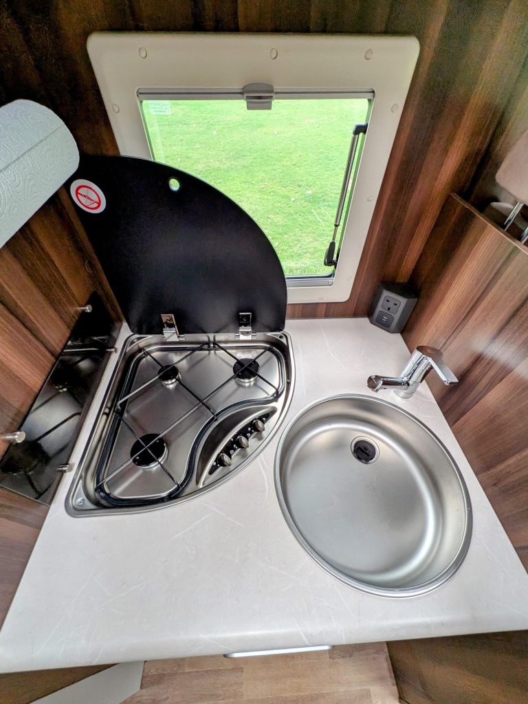 160 litre fridge/freezer and a sink with a pull-out kitchen sink mixer tap