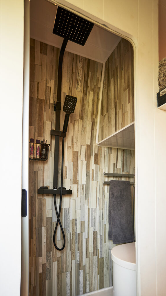 Water and Sanitation: The 90-litre water tank holds plenty of fresh water with a water filter on the kitchen tap (although the tank should be filled from drinkable water sources at all times). There is a hosepipe and adaptor for filling the tank if required. A gauge inside shows the water level. The waste water tank is 60 litres and can be drained easily at many suitable locations using a switch inside the van. The inside shower and toilet have a heated towel rail which will dry towels and clothes quickly when the heater is on. The shower has both a large rain head and a detachable showerhead. There is also an outside shower for washing dogs, bikes, children, and even the messiest adults too. The toilet is a compost toilet which separates the waste to reduce odours and has a small fan to help keep the odours away. There is also an extractor fan on the bathroom roof to remove steam.