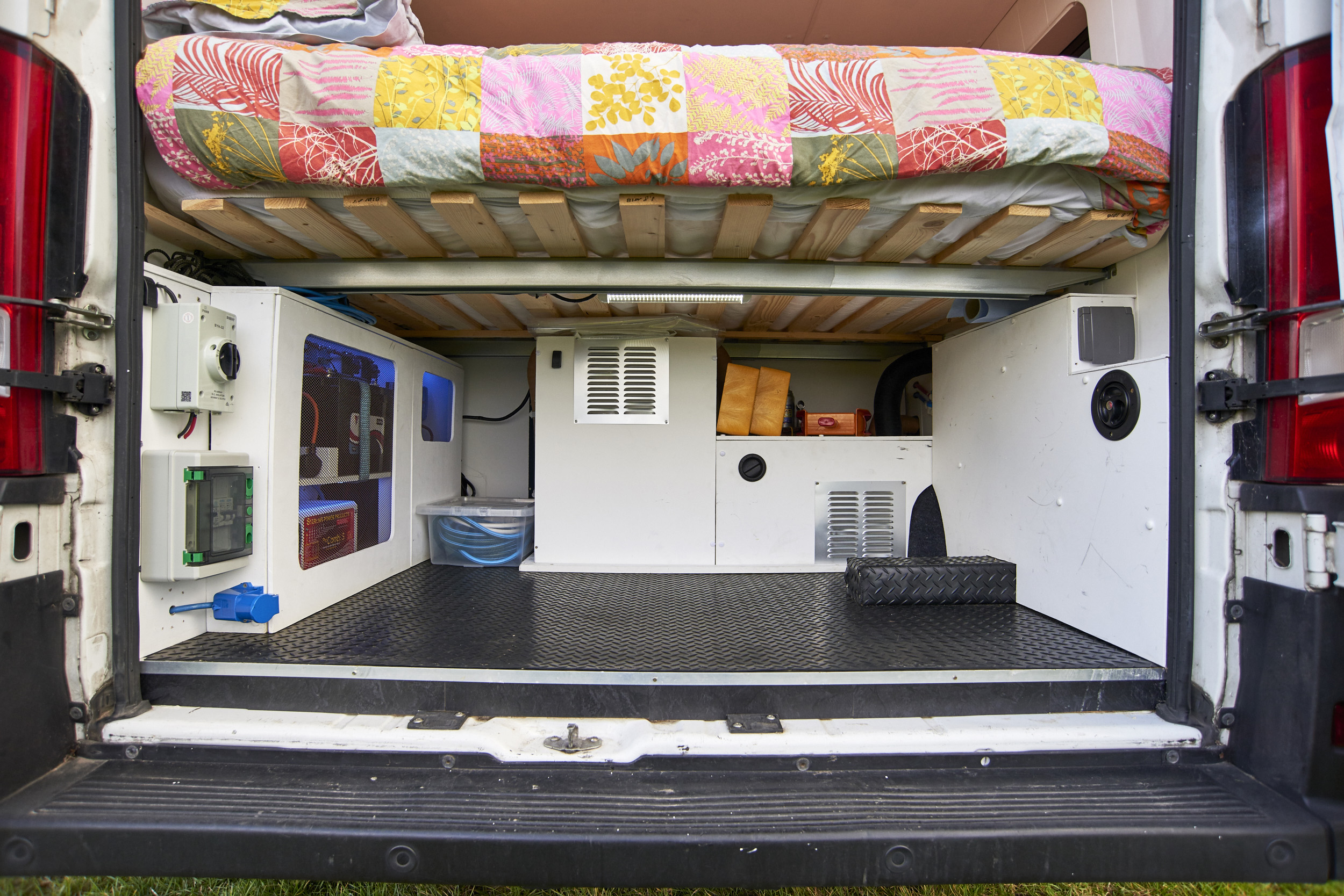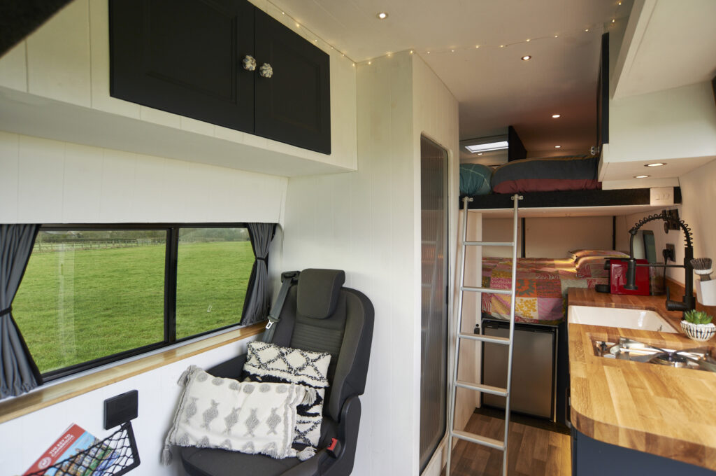 Conversion Story: The van was purchased from a recycling company which stopped trading during the lockdown. The conversion was completed to a high specification for the purpose of the family off-grid camping away from the bustle of busy campsites. The brief for conversion was for 4 fixed beds, 5 belted seats, toilet and shower facilities and enough electricity to power the Nespresso machine. It has been great fun to use as a family and we will all be sad to see it go.