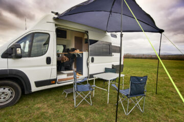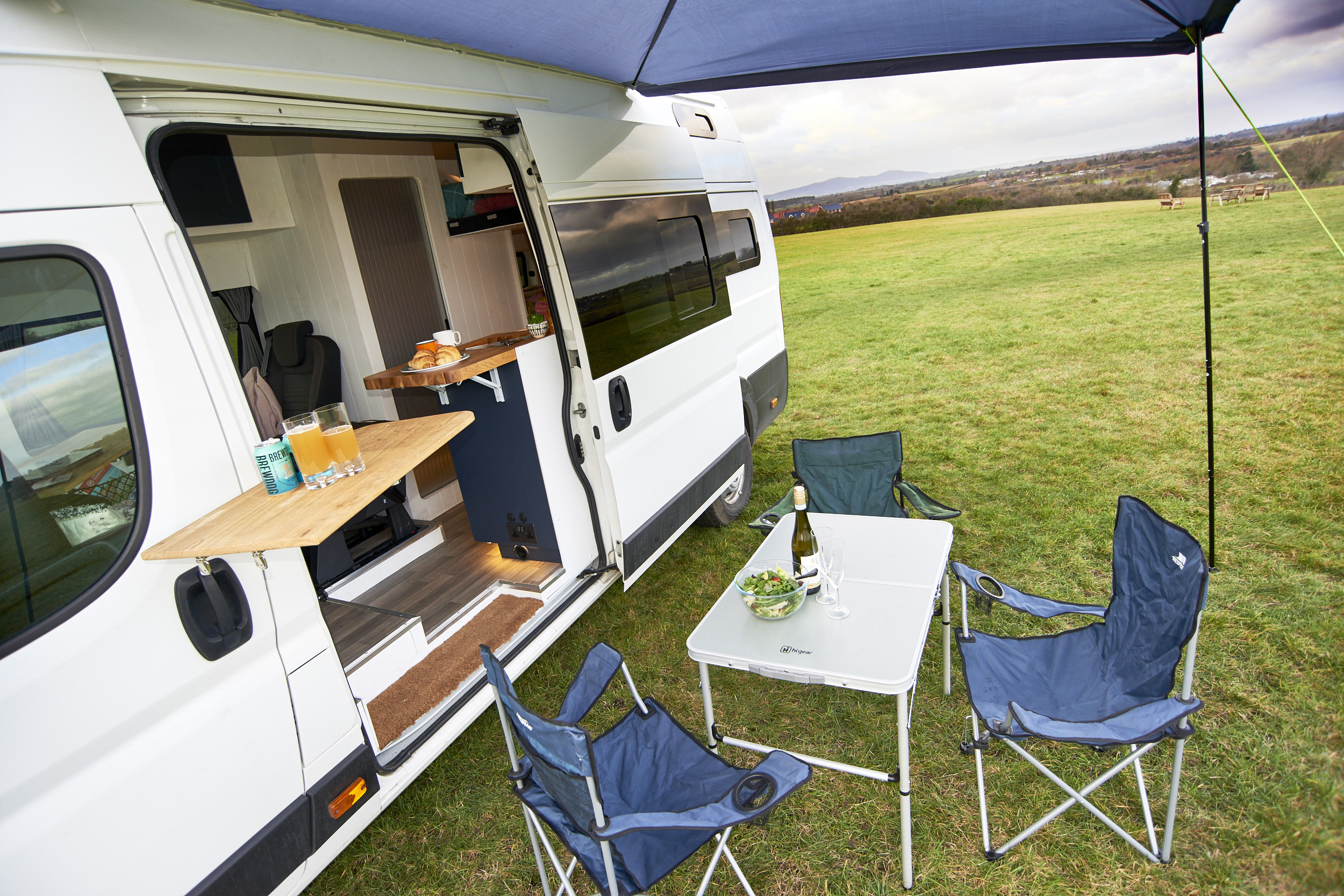 Extra Information: The van is 6 meters long but has a double reverse camera to make parking that bit easier. The van comes with a 3m square awning that slides onto an awning rail. Very easy to fit and provides a great sun/rain shade.