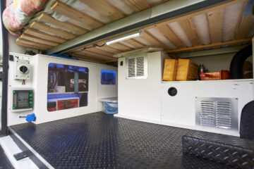 Electrical Setup: The van is fitted with a high-specification Victron electrical system designed to be off-grid with no need for it to be plugged into the mains (Although does have a mains plugin if required). 375W of solar panels on the roof keep the 110Ah LiPO battery topped up and the battery-to-battery smart charger will support that when the engine is running. There are plenty of USB, 12V and 240V sockets and plugs around the van. The 2500W inverter/charger can support the van’s Nespresso coffee machine, a milk frother or even a hair dryer. The Victron system has an easy App to watch the power of the battery and how much power is going in/out.