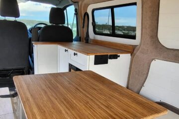 Sleeping arrangements are versatile, allowing you to convert the space into a comfortable double bed by dropping the table down or flipping the bed unit over. Ample storage, including pull-out drawers and compartments, keeps your gear organised, and a door to slide-out a chemical toilet for convenience. The van itself is insulated and lined with the best DODO Mat for soundproofing and thermal efficiency, while the interior is decorated with Farrow & Ball and bamboo finishes.