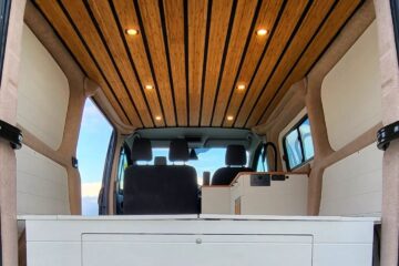 Outside, the van accommodates a drive-away awning (not included), but sets up quickly with the attached Thule pull-out awning. The van is insulated and lined with the best DODO Mat for soundproofing and thermal efficiency, while the interior is decorated with Farrow & Ball and bamboo finishes.