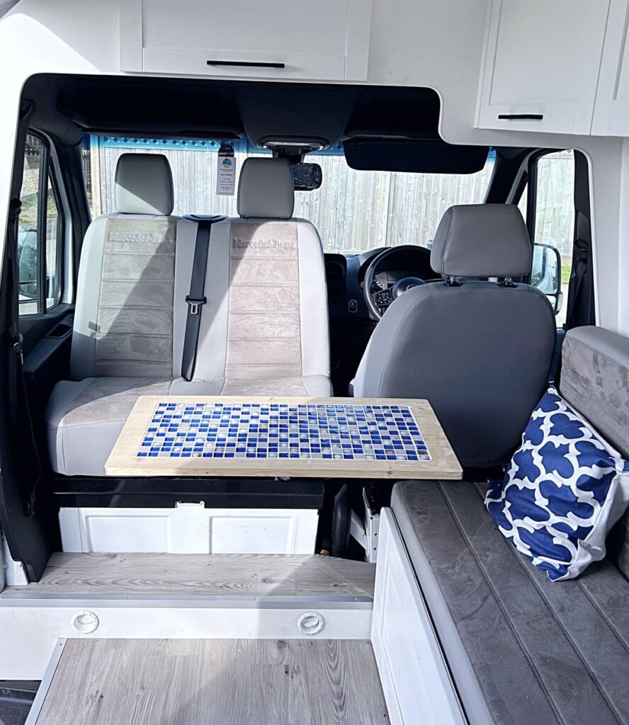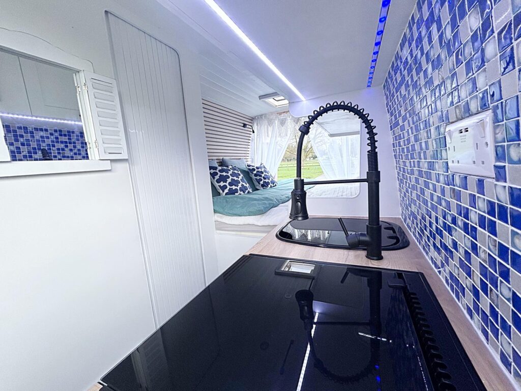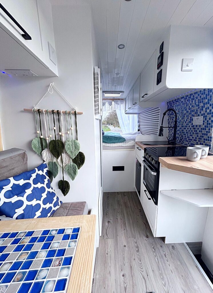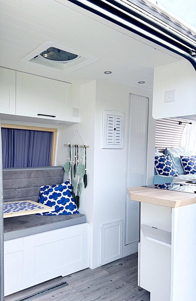 MammaMia is Made with love and care by our family at Car Glass Service, this camper aims to bring the fun and family friendly vibe to make you feel like you’re on a greek island having a good time wherever you may be. Using beautiful shades of blue combined with white to remind you of the greek islands every waking moment. Rustic but comfortable built in a modern bright Mediterranean style from lightweight but high quality materials bringing a high standard suitable for full time living.