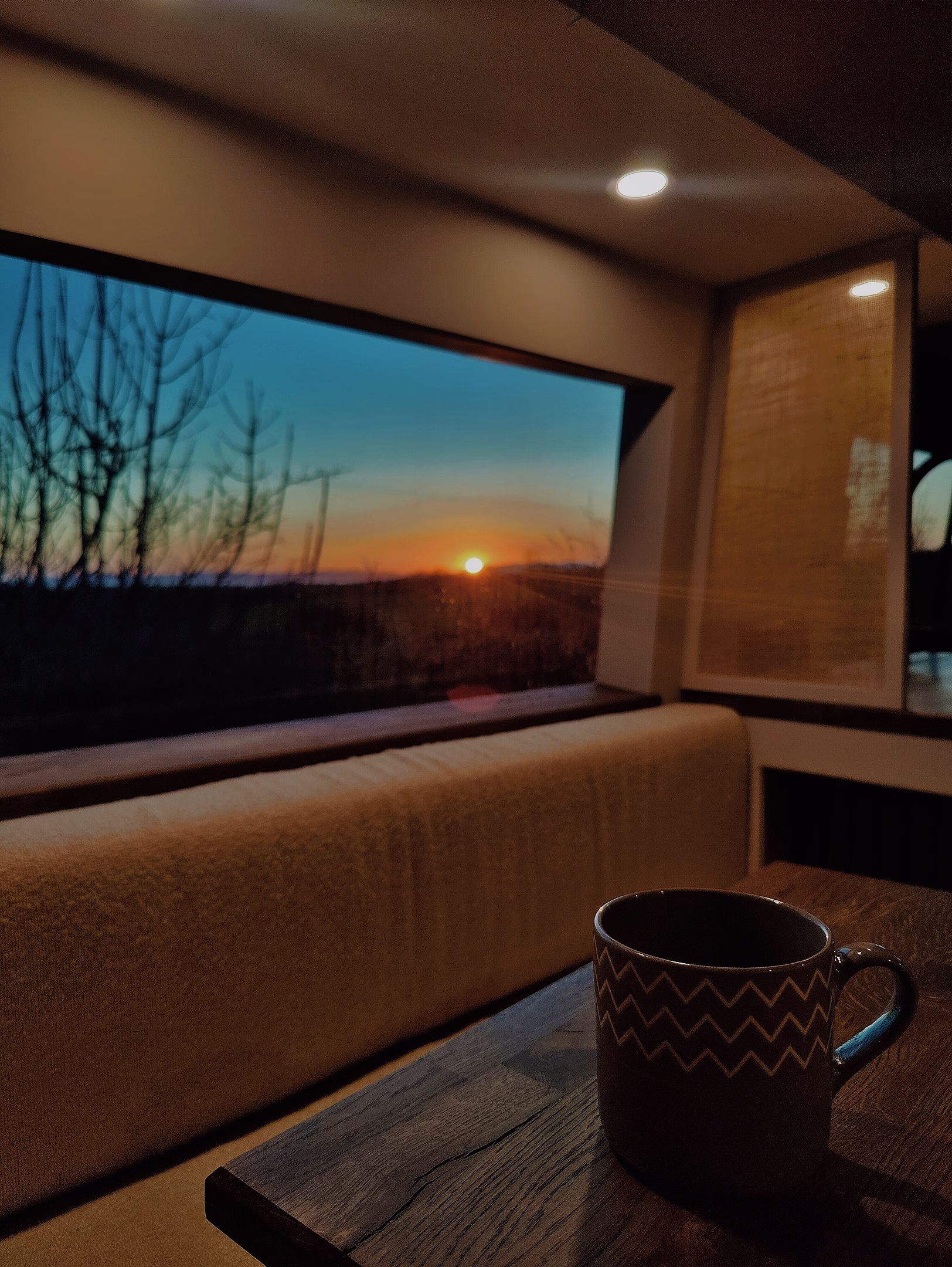 Double layered memory foam cushions and thermal black windows guarantee a great nights sleep. Sliding entry door window can open or close.
