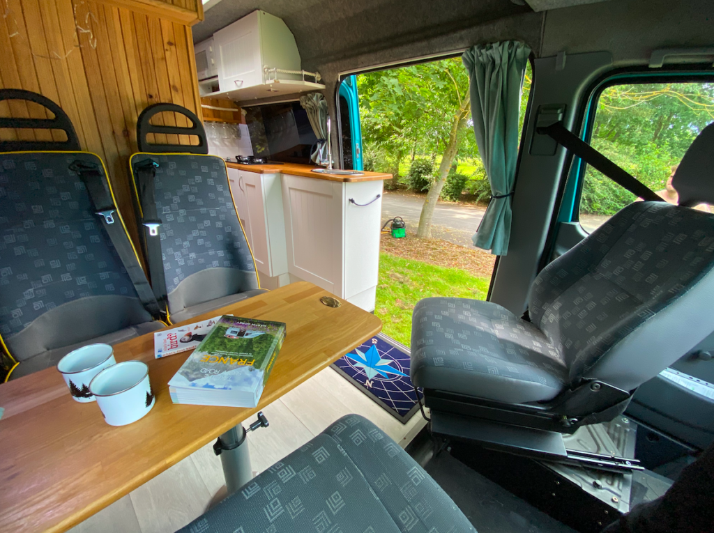 – Both front seats swivel to make 4 seater dining area around the oak table which can be adjustable if needed. All 4 seats are fitted with seat belts.