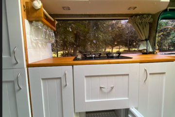 – Two burner black glass hob is run from a gas cylinder using LPG gas which is refilled from a gas pump at petrol stations via a connection on the outside of the vehicle so no need to worry about lifting and moving heavy cylinders. Levels can be monitored via the tablet app so you always know how much you have.