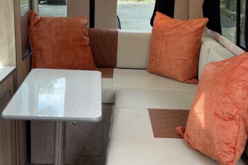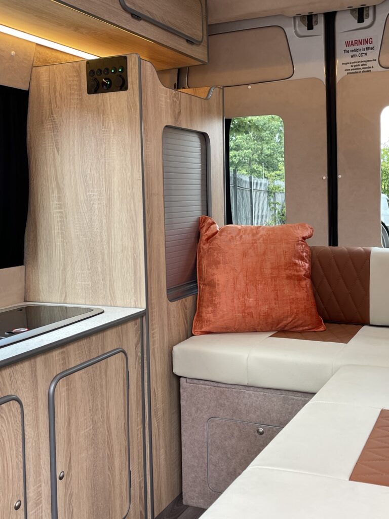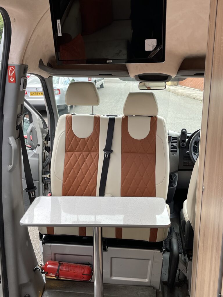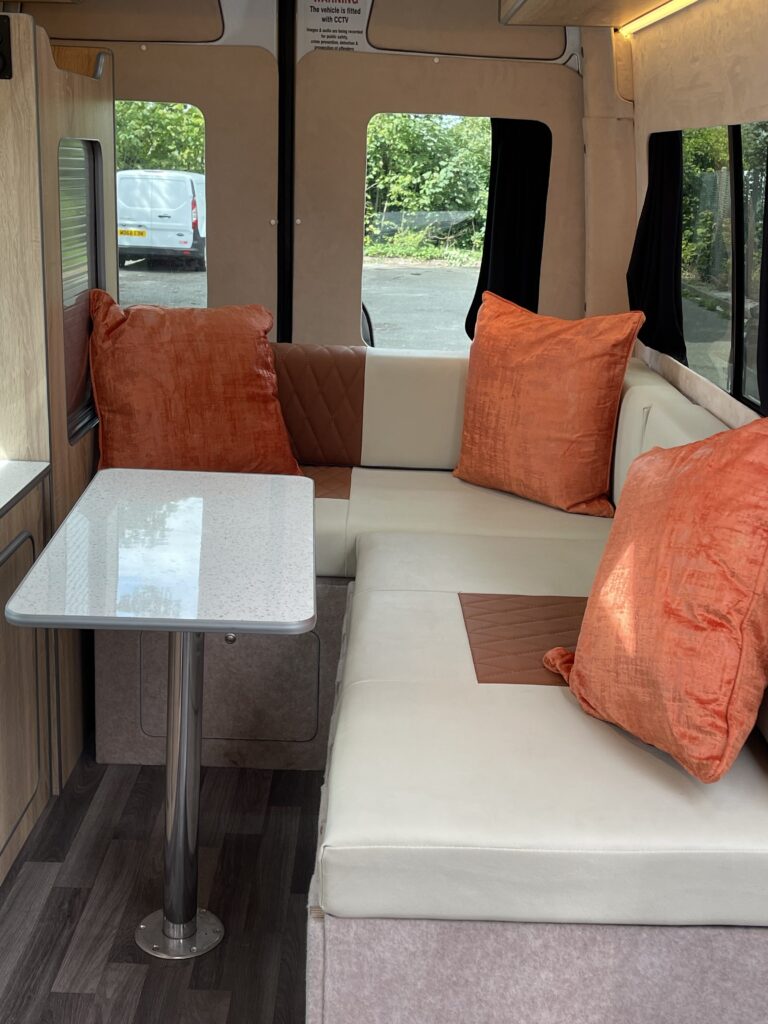 2009 (59) plate in silver, Air conditioning, cruise control, electric windows, Parrot hands free kit, very very clean and tidy bodywork runs and drives like new and is registered with DVLA as a motor caravan, as you can see from the pictures the interior is stunning with bespoke upholstery and includes Truma hot water system, 12v LED spotlights and 12v LED under unit strip lighting, 240v mains hook up with double sockets and usb charging ports, built in 12v & 240v freeview 24 inch LCD TV, digital roof aerial, roof mounted Bluetooth speakers, Thetford cassette toilet, 12v & 240v fridge, Smev 9222 hob & sink, front and rear roof vents with extractor fans, double passenger seat with swivel, two removable floor mount tables, new 16 inch alloy wheels, built in gas locker, suede headlining and matching window panels, blackout curtains.