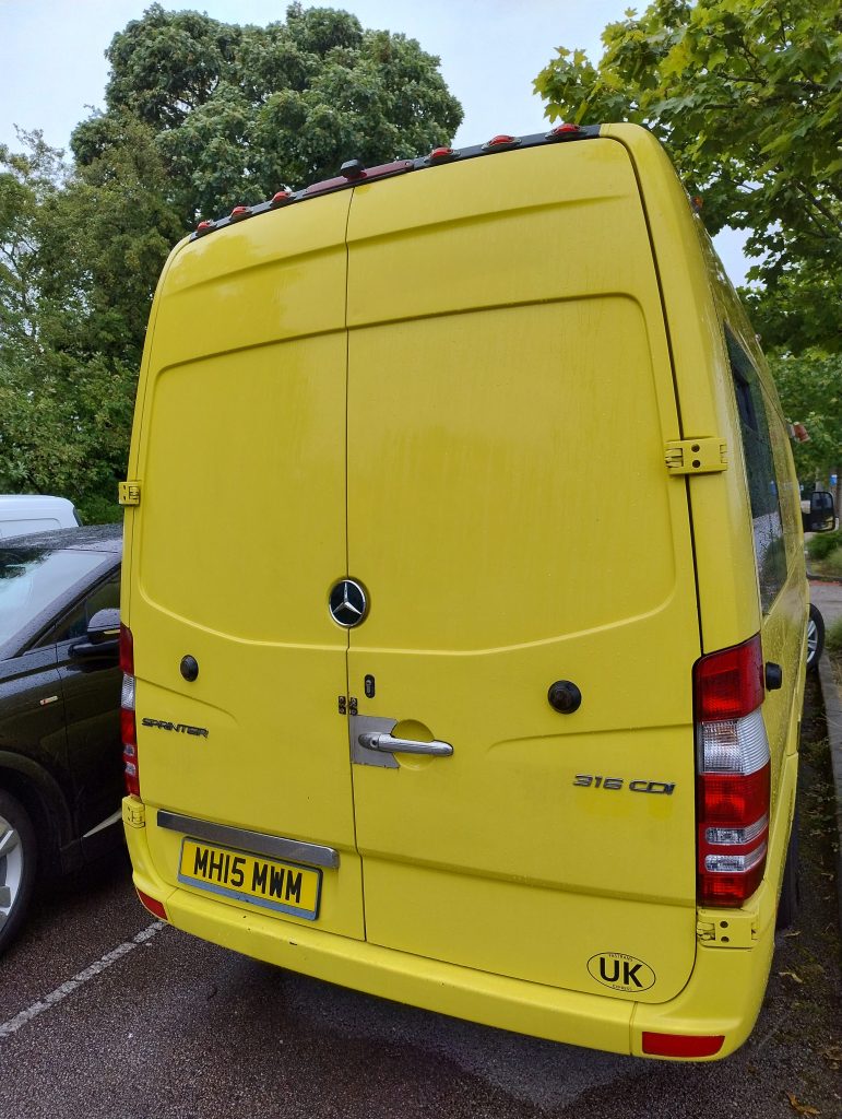 It was from a local company in Manchester who run a fleet of these yellow sprinters.