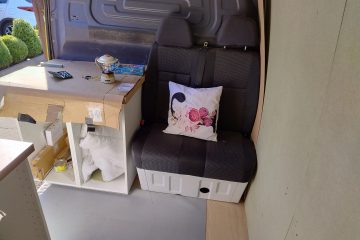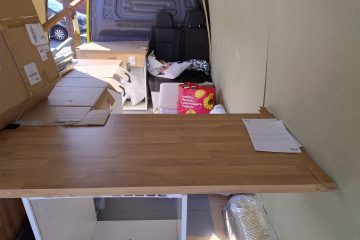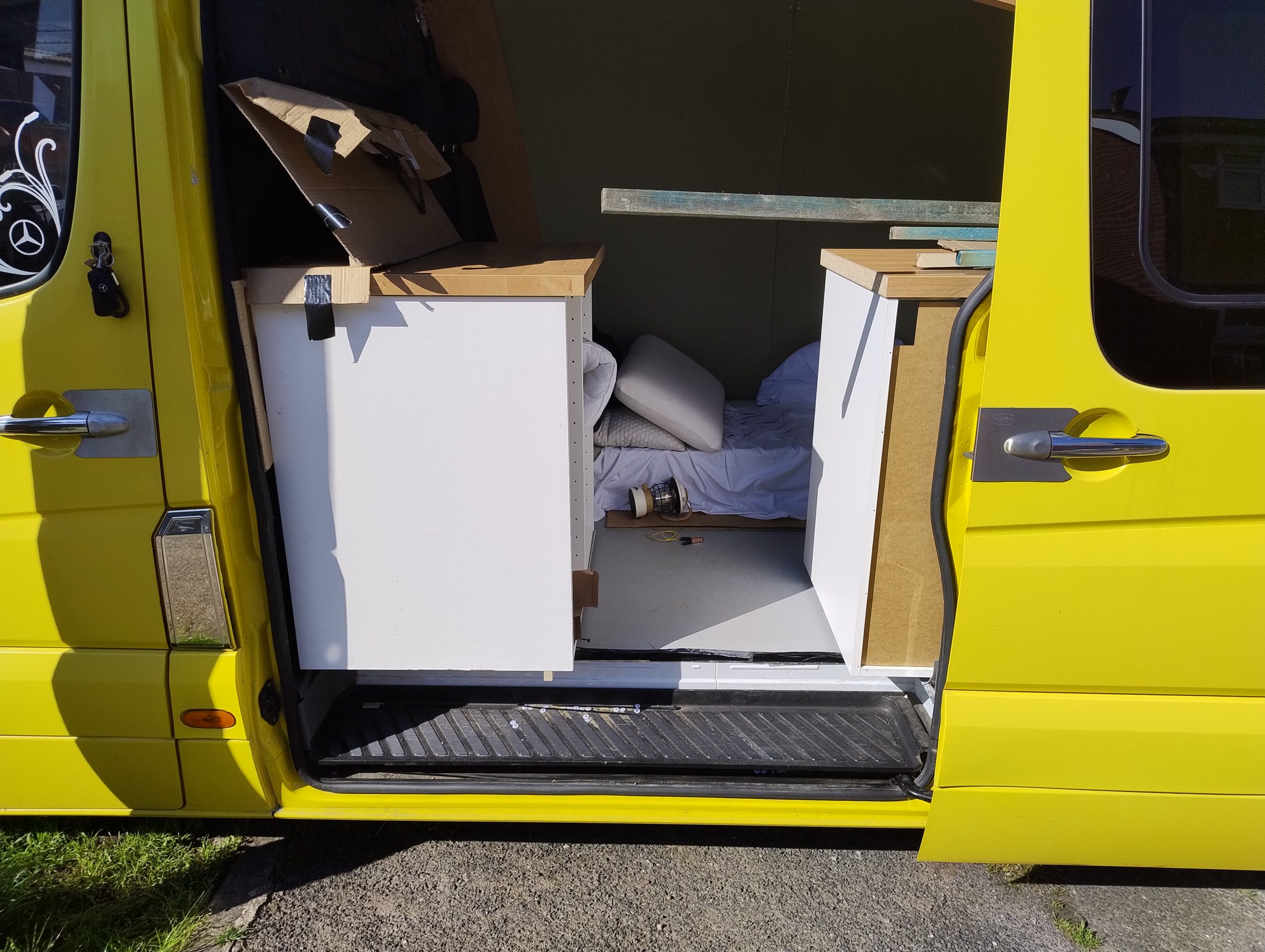 Idea was to have a bed at the bank of the van which extended over the kitchen work top.